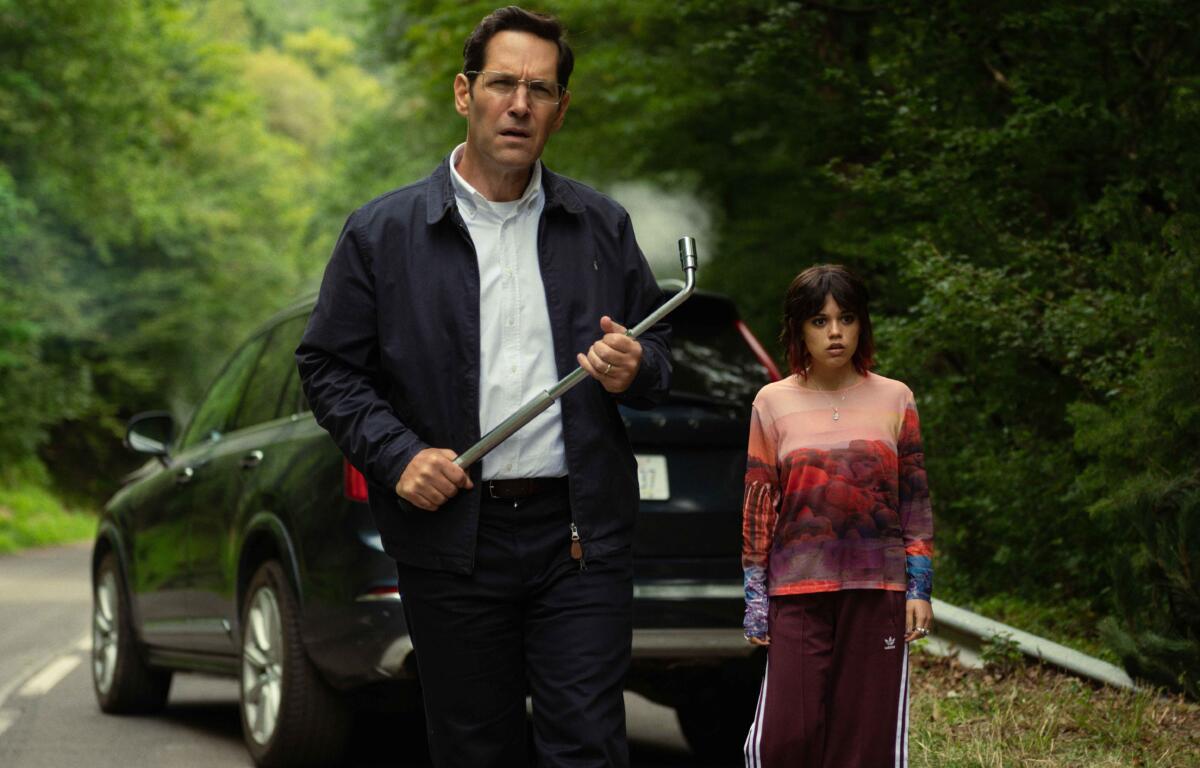 “Death of a Unicorn” stars Paul Rudd and Jenna Ortega as a father-daughter duo who turn a baby unicorn into roadkill on the way to the remote estate of Rudd’s wealthy employers, a family of pharmaceutical industrialists. The family, played by a maniacal Richard E. Grant, an icy Téa Leoni and a himbo Will Poulter, quickly discover that unicorn blood, guts and horn can be used as properties for fabulous innovations, such as curing cancer. The problem is that Mama Unicorn wants her baby back.
