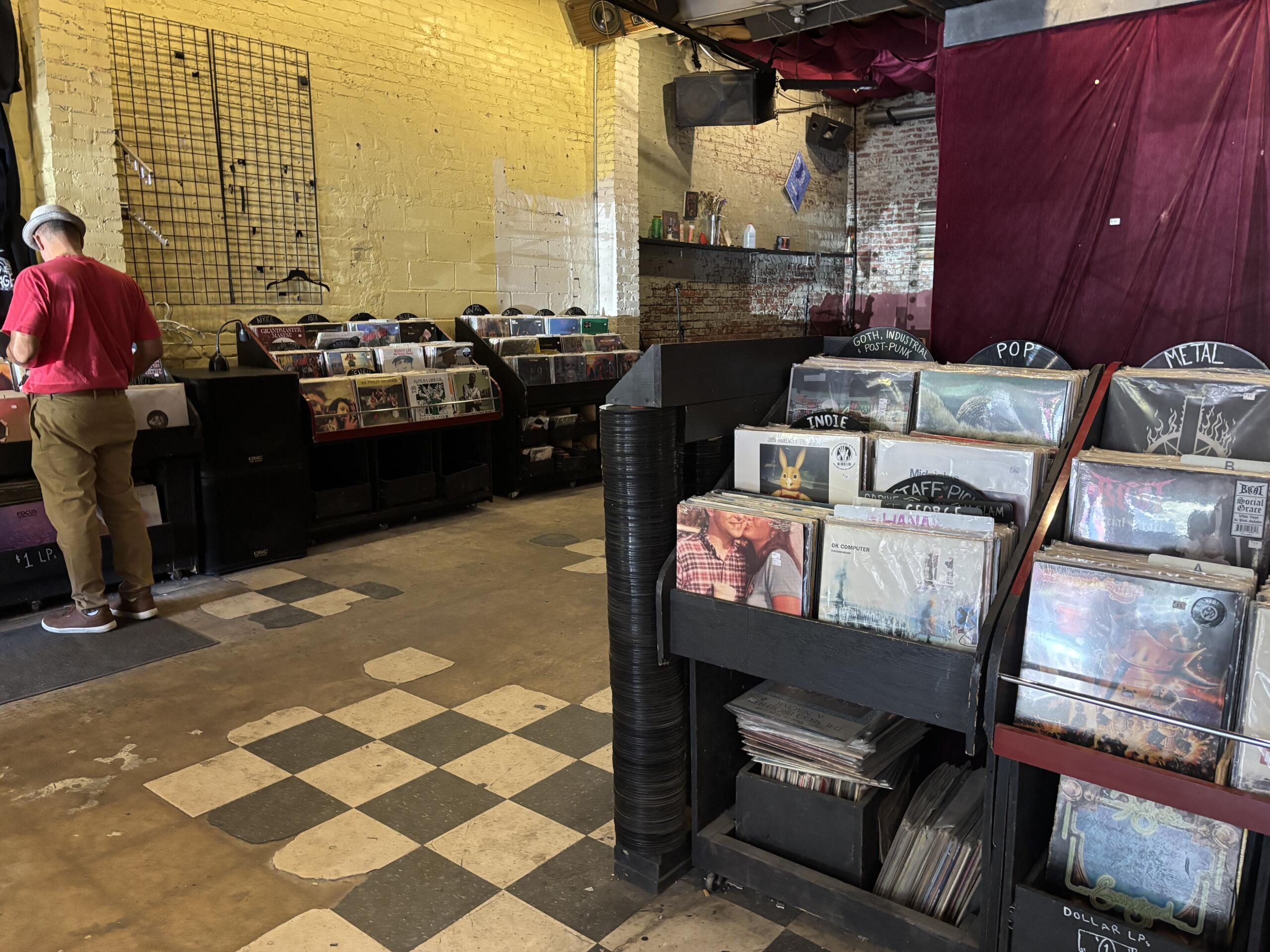 Harvest Records, founded in 2004, may be dark in this photo, but it usually bustles with people and energy.