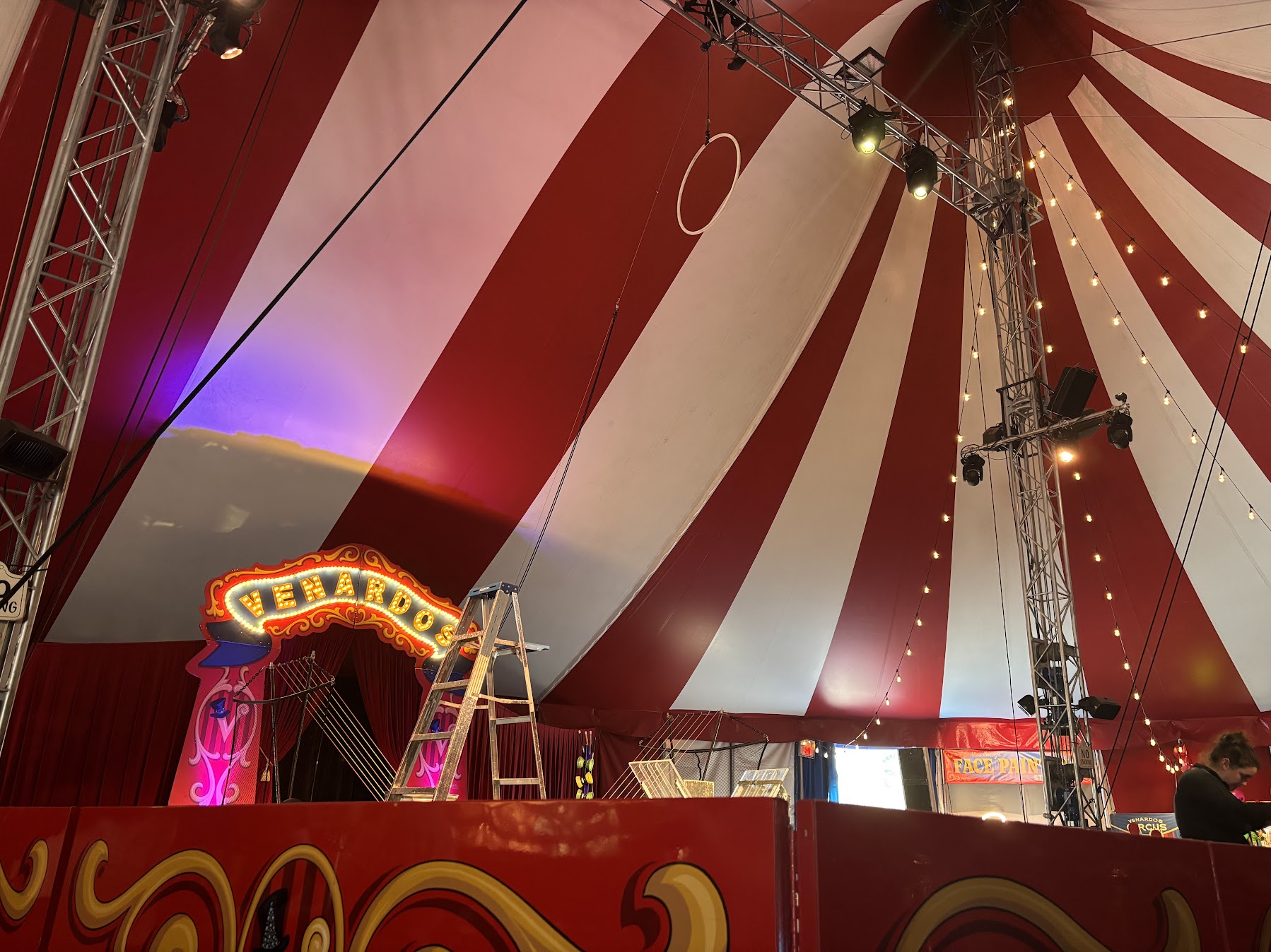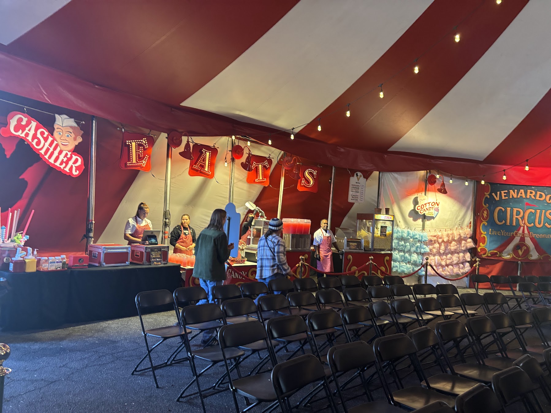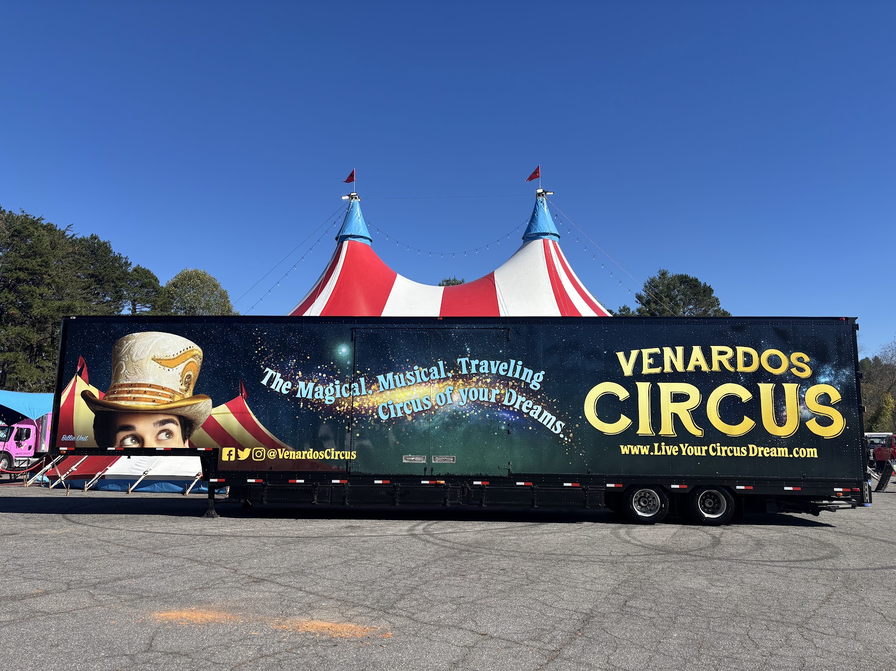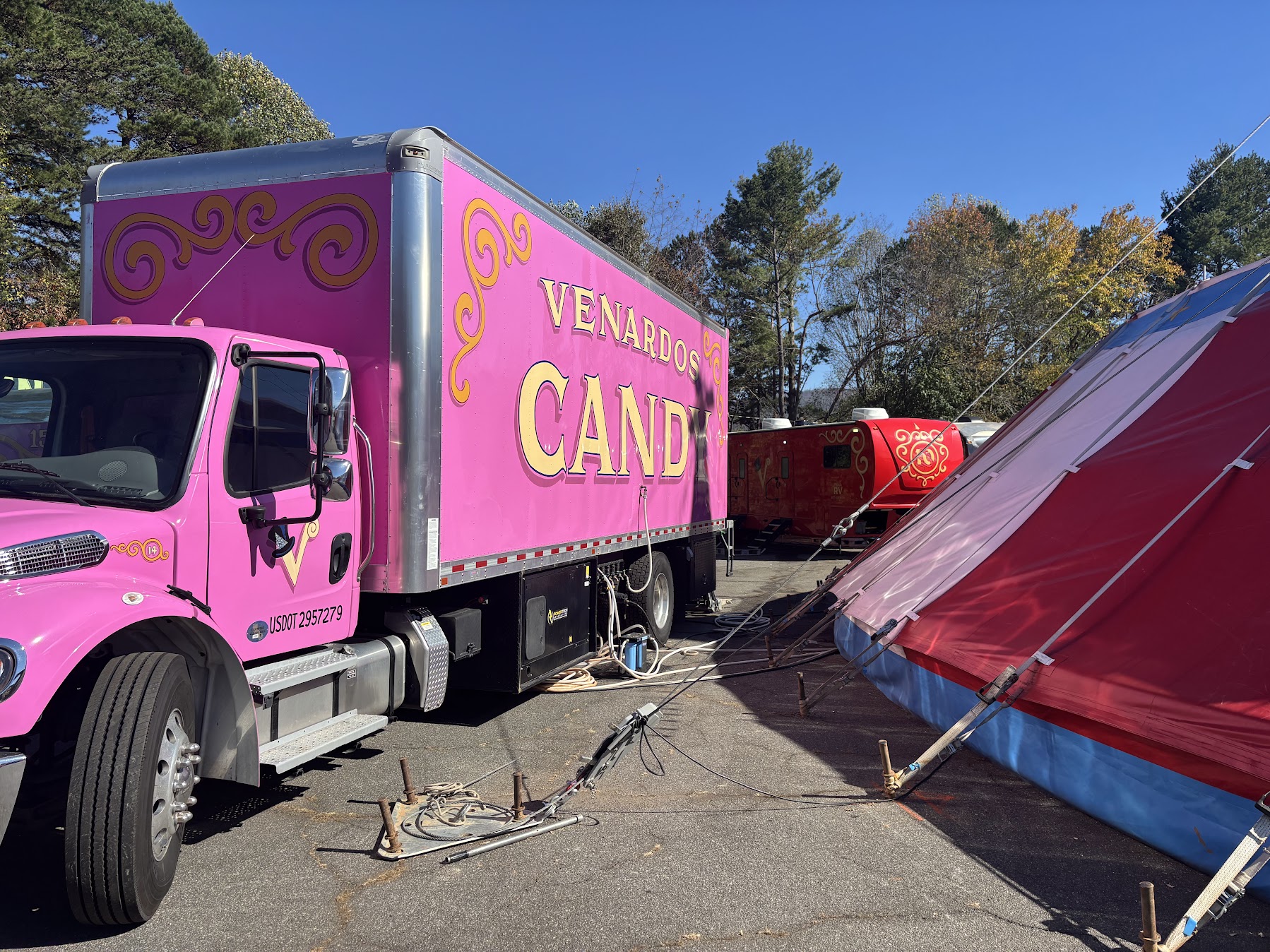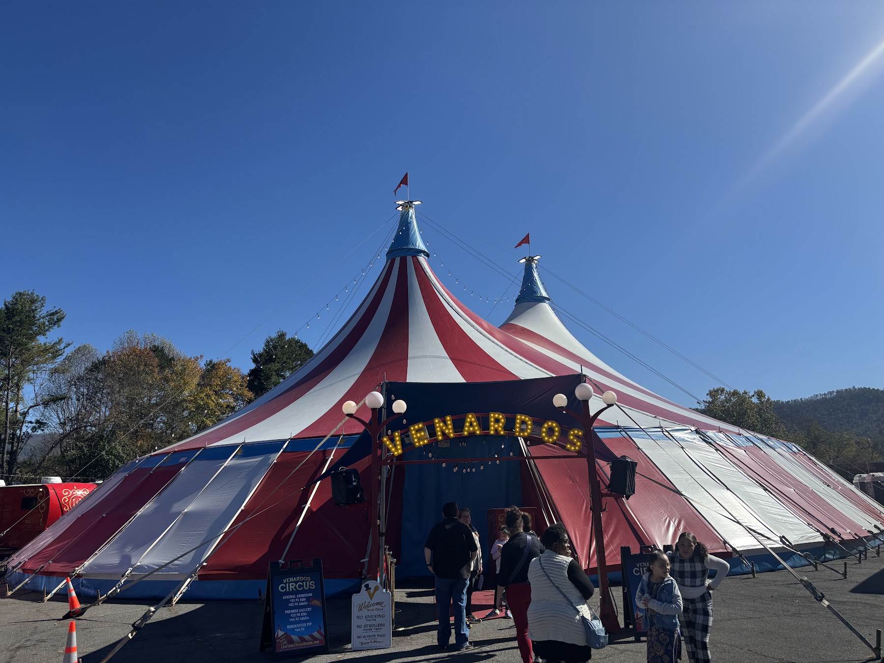 While Venardos usually sets up the big top at Tanger Outlets in South Asheville, that was not possible due to conditions after Helene. Fortunately, the Mayor’s Office of Weaverville reached out. The circus would go on at Reems Creek Rd.