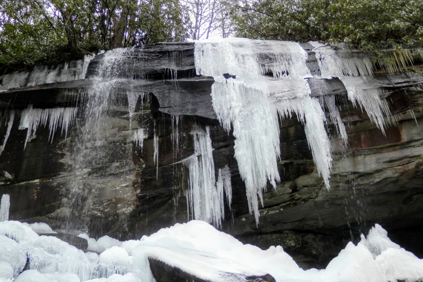 The Forest Heritage Scenic Byway takes travelers past the ice cliffs along N.C. 215 near the Blue Ridge Parkway. This scenic mountain drive through Pisgah National Forest is highlighted by beautiful mountain scenery and is a great way to explore Pisgah National Forest and iconic places like Sliding Rock, Looking Glass Falls and Looking Glass Rock along with way.