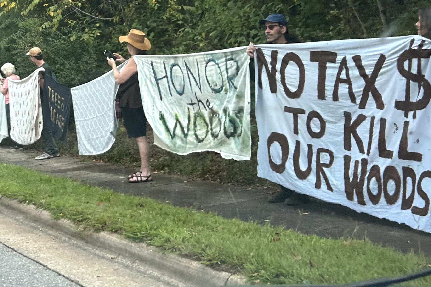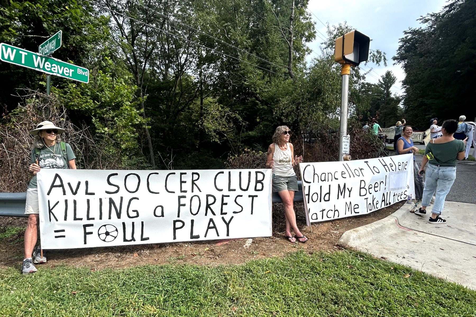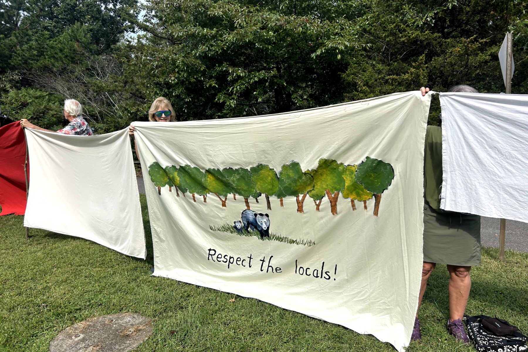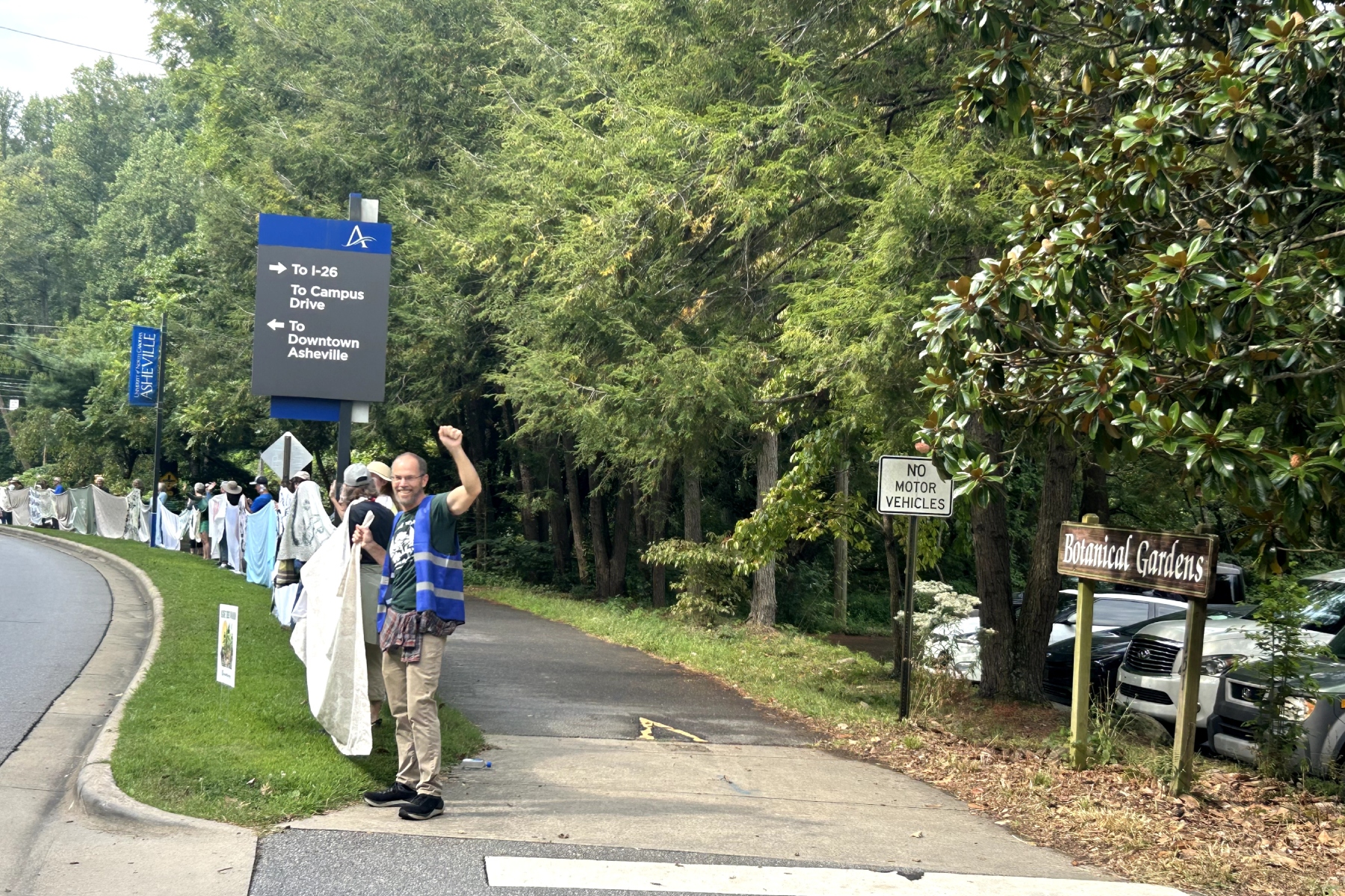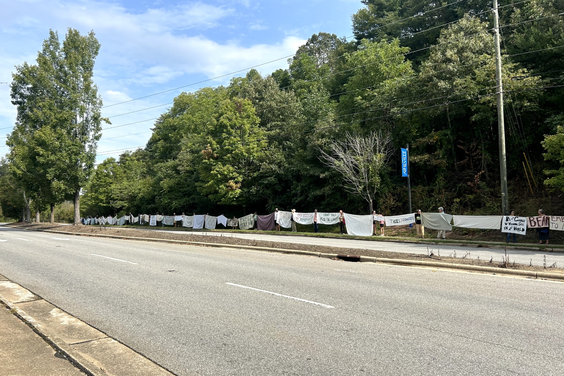 The “Wrap the Woods” concept was inspired by a 1980s effort in downtown Asheville, when residents held up chains of cloth to protest a proposed mall that would have demolished 11 blocks of the city. Save UNCA Woods has been hosting sign- and sheet-painting events leading up to Saturday’s demonstration, including one on Sept. 3 at the Montford Community Center.