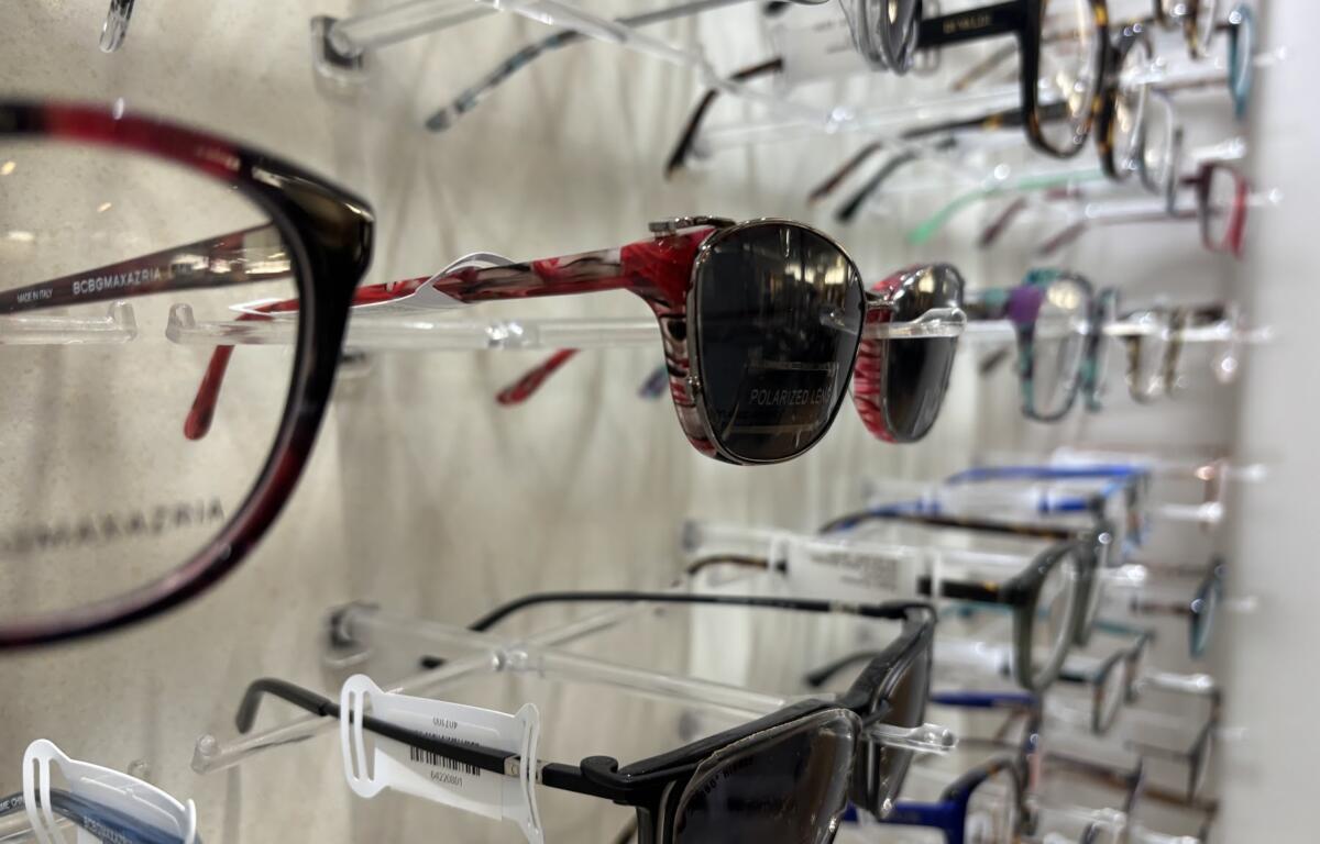 Sarah Coghlin, Asheville Eye Associates director of marketing and project engagement, examines the high-end frame selections Asheville Eye Associates chooses.