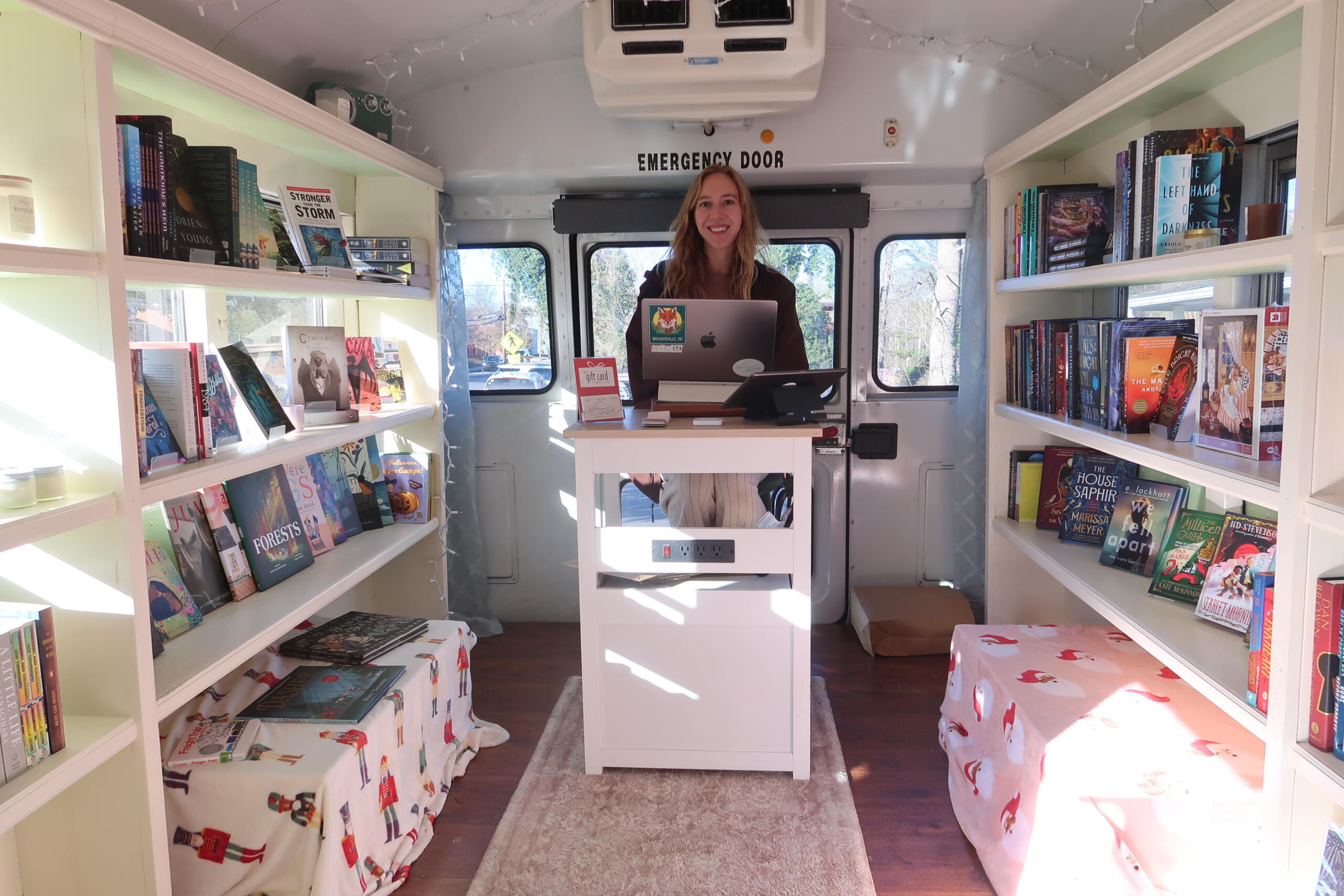 “I have a shelf for local authors. Some people have come to the bus to give me their stuff, which has been super, super fun,” Johnson said. “I’m really wanting the bus, the business, to feel like it’s supporting the community, ’cause we’re being so supported by them.”