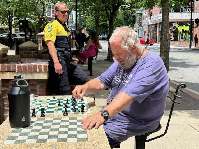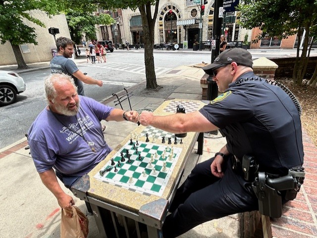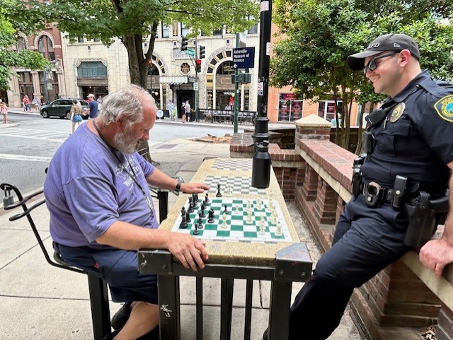 Several weeks ago, Asheville police officers dusted off the chess boards at Pritchard Park and began taking on challengers.