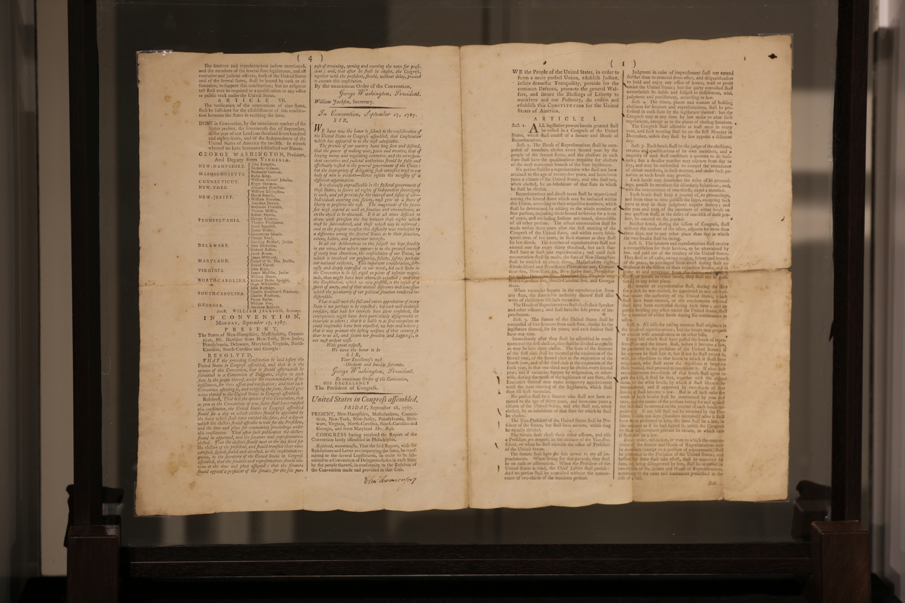 The copy was printed after the Constitutional Convention finished drafting the proposed framework of the nation’s government in 1787 and sent it to the Congress of the ineffective first American government under the Articles of Confederation, requesting it be sent to the states to be ratified by the people.