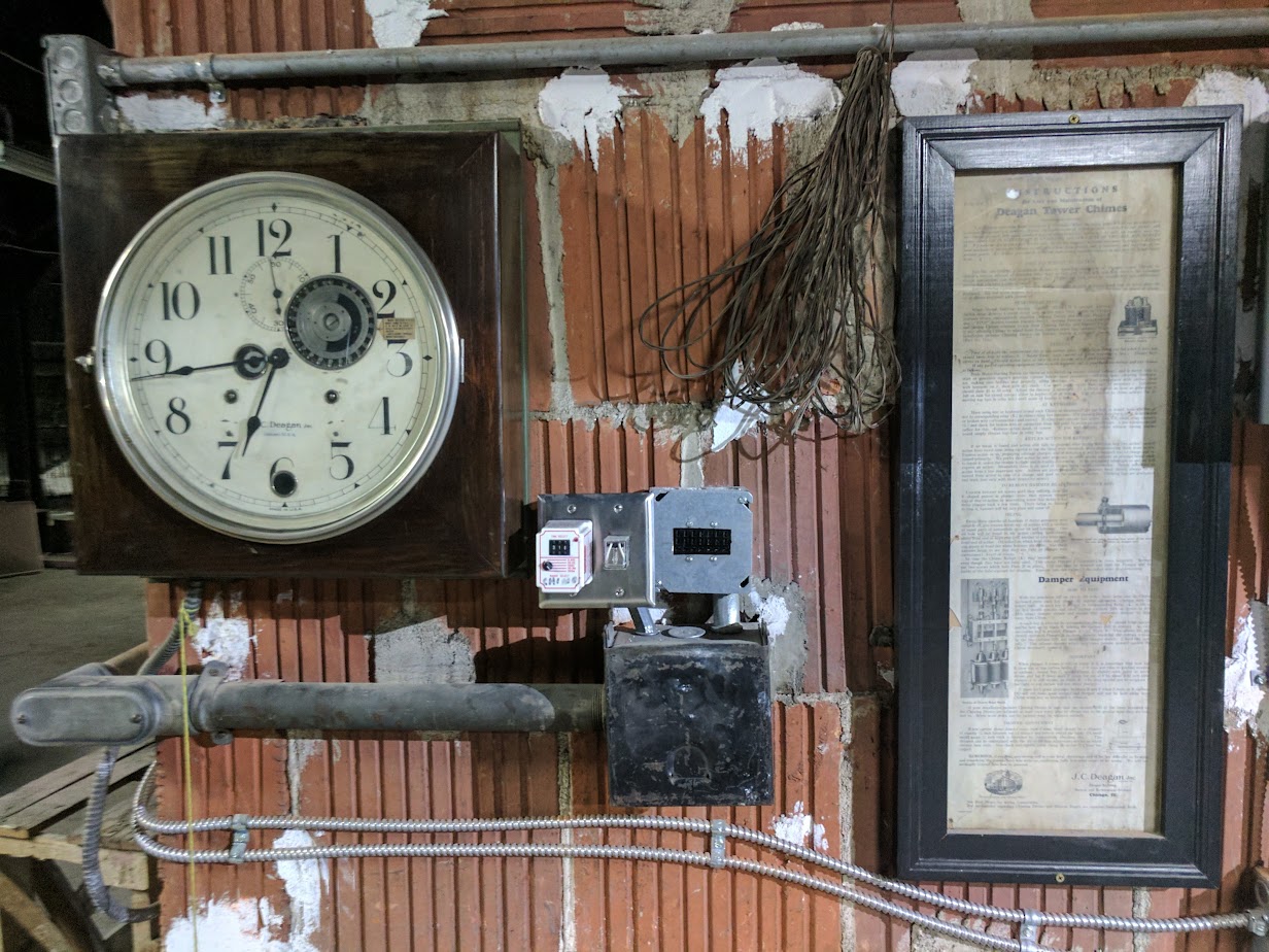 In the late 1980s there was an effort to restore the chimes, and the restoration finally got underway in 1997, officials said. During the restoration, the chimes were disassembled, cleaned, polished and painted. The wooden rack holding them was scraped clean and repainted. The wiring, originally installed in the 1930s did not need refurbishing.