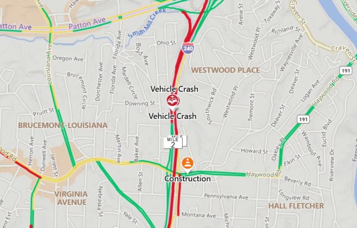 The crash occurred in the left lane between Haywood Road and Jackson’s Curve, near mile marker 2. Authorities closed the left lane at Exit 2, U.S. 19/23 Business (Haywood Road), leaving only one of two lanes open.