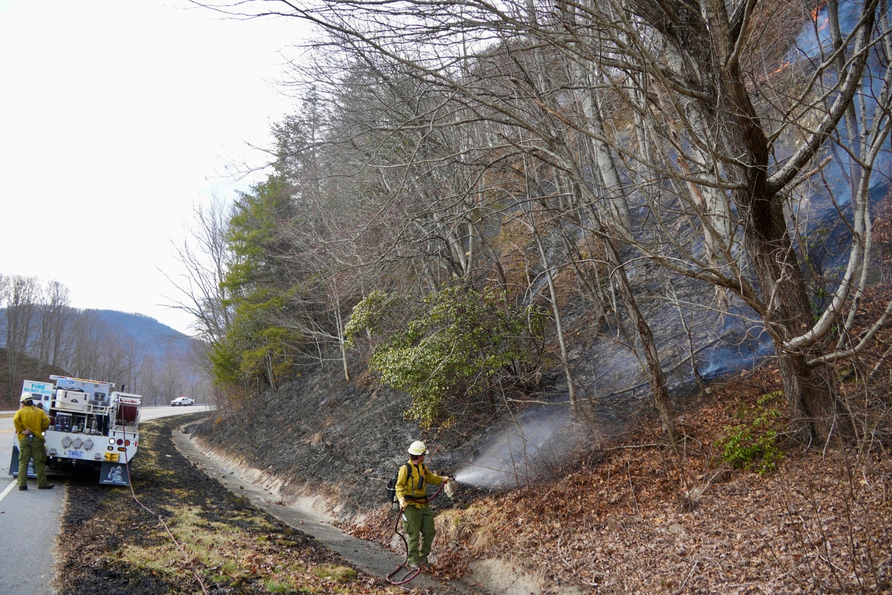 Firefighters on Tuesday built handlines and dozer lines along the western edge of the fire and conducted mop-up operations along the northeastern perimeter. Crews also carried out a small firing operation along U.S. Highway 64 to strengthen the highway as a control line and reduce the potential for additional spread.