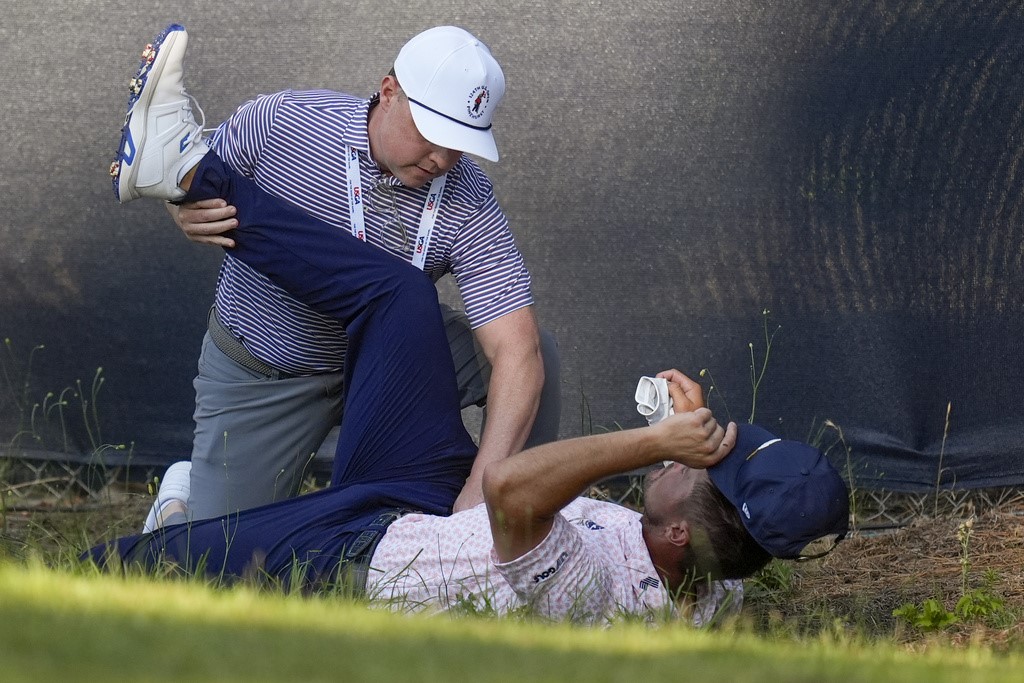 DeChambeau said it was “two hips that are not fantastic” from his speed training that led him to ask for a trainer and get worked on in the woods after the 10th hole. He went to the 11th, belted a 347-yard drive, hit wedge safely to the center of the green and made a putt from just outside 12 feet to become the first player to reach 7 under all week.