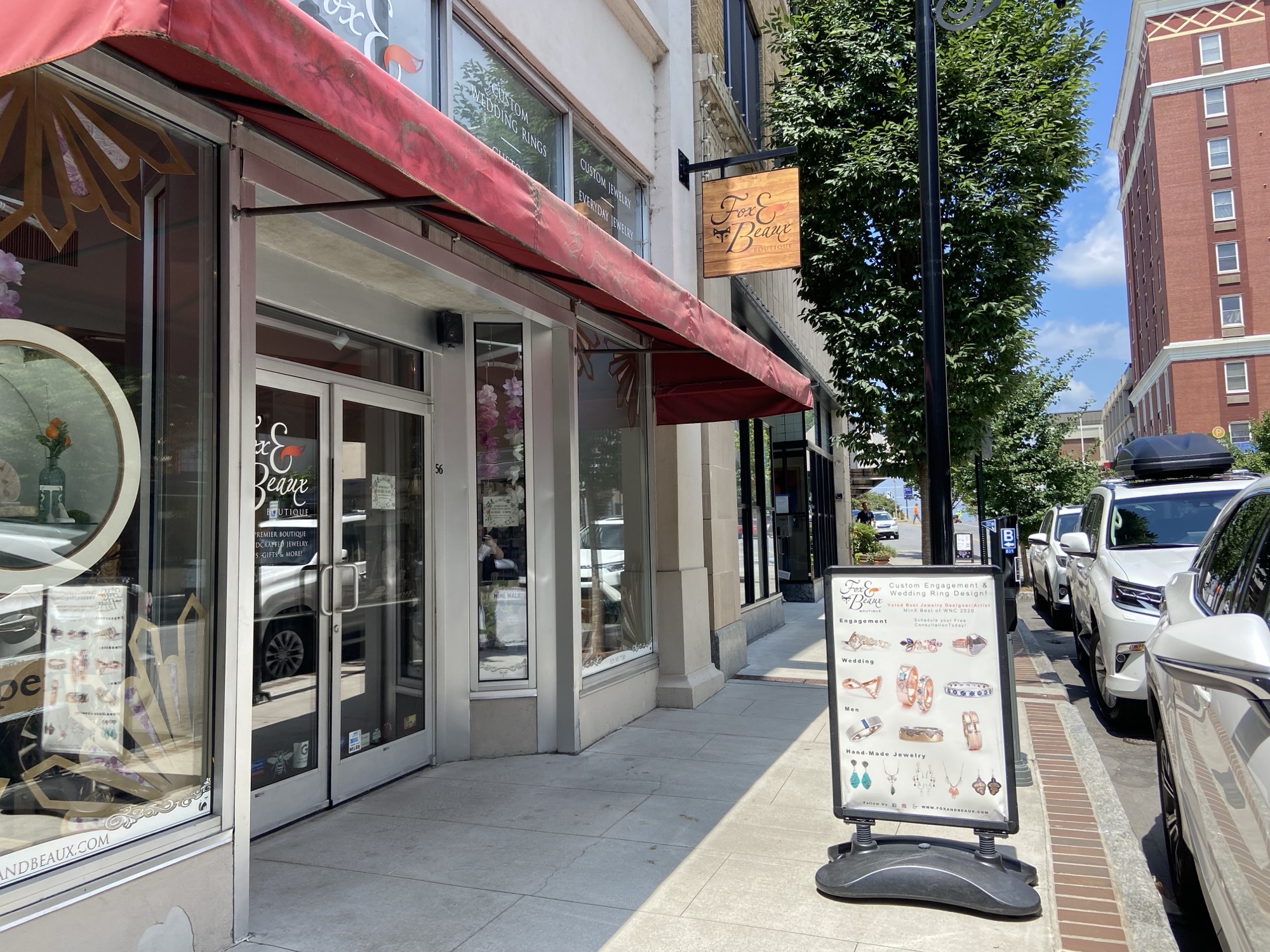 Aug. 15, 2024 – Pictured: Fox and Beaux Boutique & Custom Jewelry Design Studio. Business was back to usual the day after Donald Trump made a campaign stop in downtown Asheville. But several workers said the events were disruptive to business.