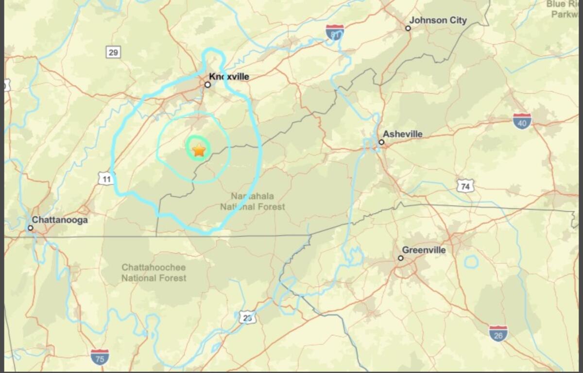 The United States Geological Survey reported a 4.1 magnitude quake about 9 a.m. about 13 miles southeast of Greenback, Tennessee.