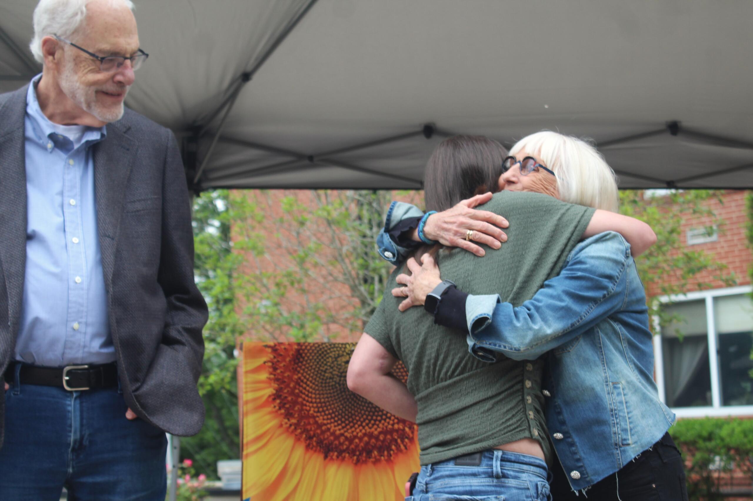 Standing nearby, co-founder Lisbeth Riis Cooper stepped in for an embrace, as her husband, co-founder Don Cooper looked on with a smile.
