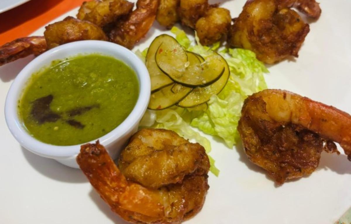 The shrimp pakora ( jumbo shrimp fried in a spicy chickpea batter and served with mint chutney) was a real surprise. I’ve had it many times, but this was perfect.