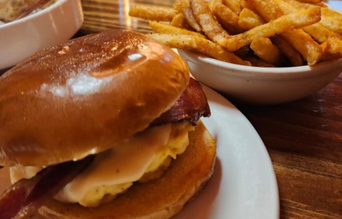 For my entrée, I chose the bacon and cheese sandwich on a brioche, which was fine, but would have been really good on a biscuit. I thought the side of French fries was wonderful.