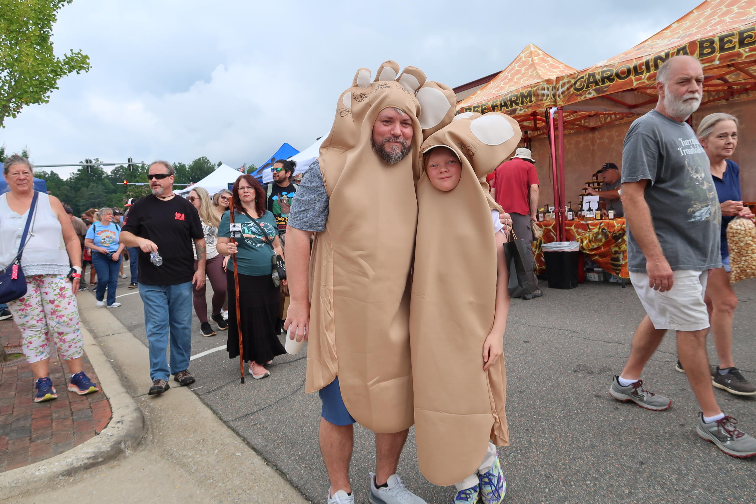 A father and son walked along proudly in their “big foot” costumes.