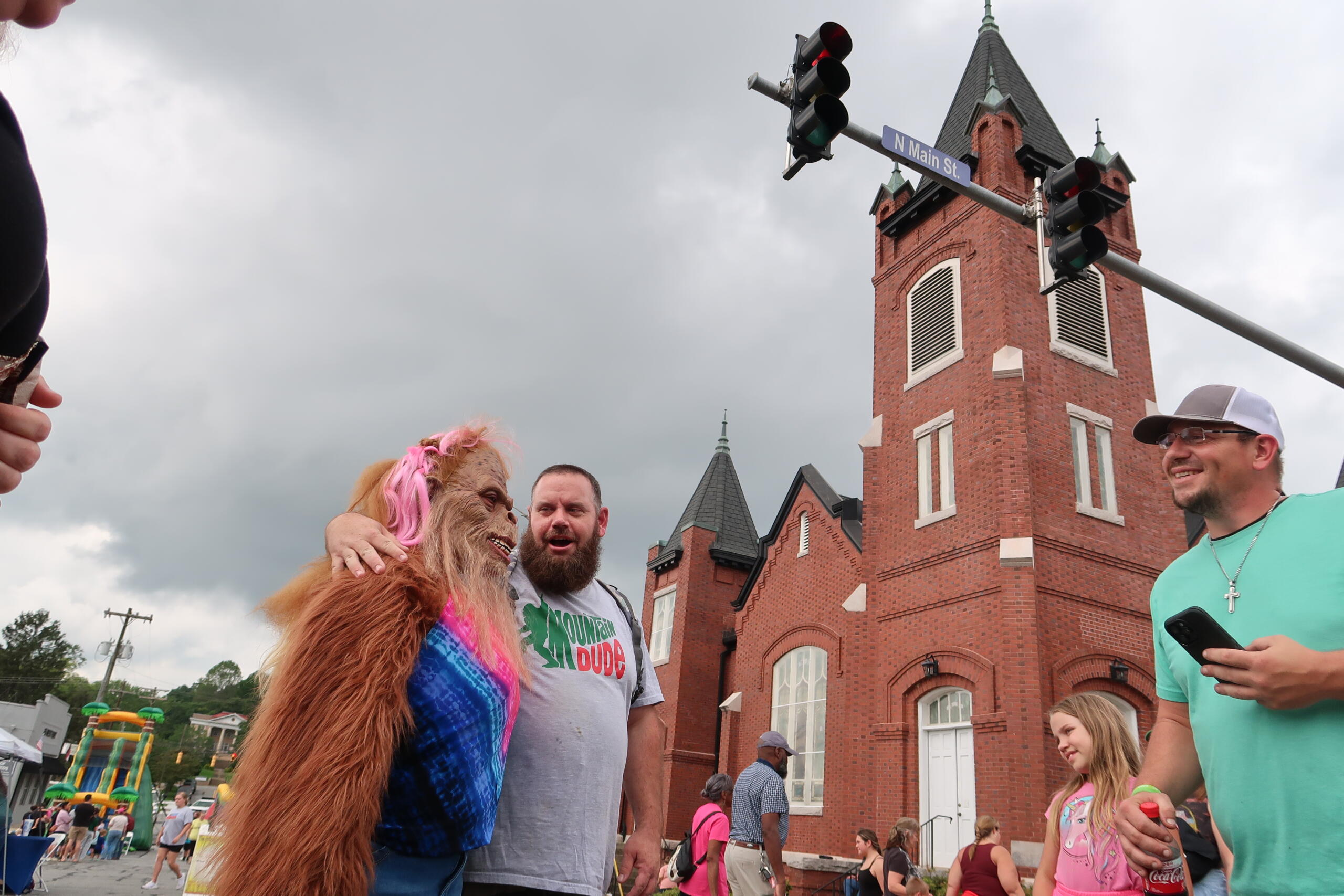 “Look, he’s down there!” his parent replied. A fellow festival patron was ready for the photo opportunity in their full-furred sasquatch garb.