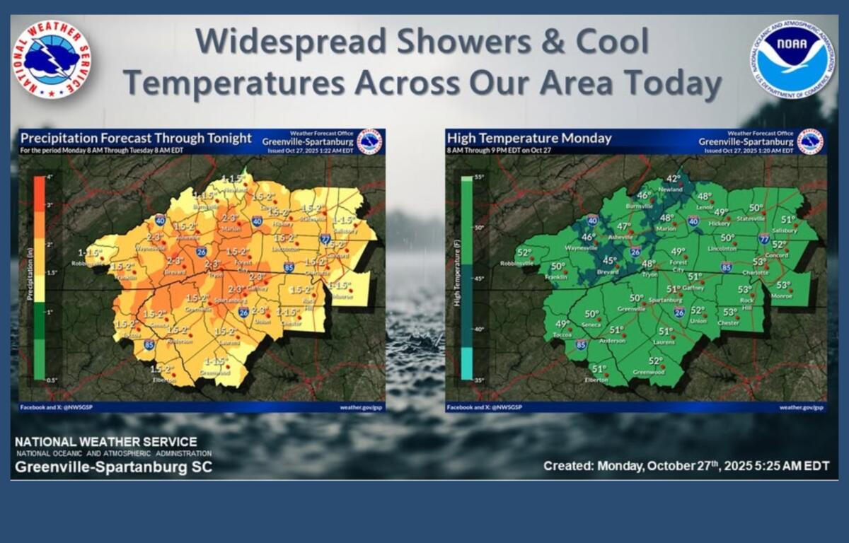 ASHEVILLE, N.C. (828newsNOW) — Western North Carolina is starting the week under a familiar fall pattern — cold, gray and wet — as a cold air wedge settles across the region.