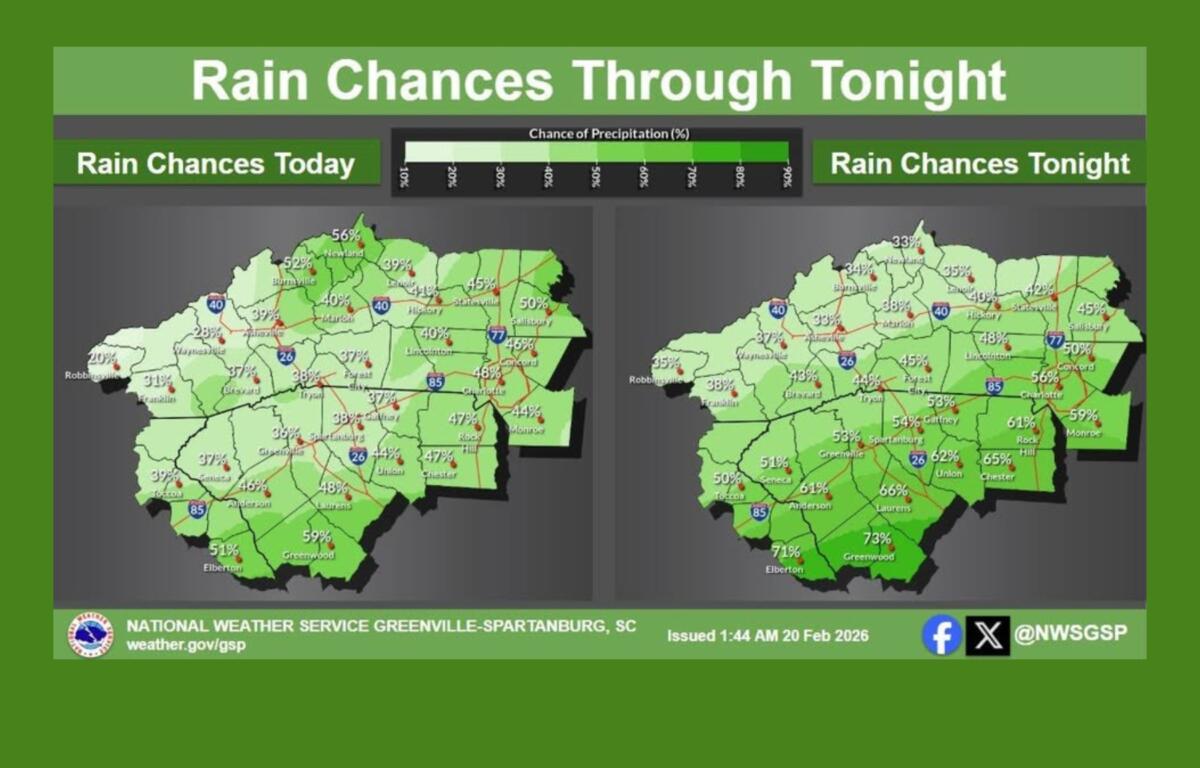 Rain chances are forecast to increase again late Friday night into early Saturday, mainly along and south of Interstate 85. Rainfall totals are expected to range between a tenth and a quarter inch, with minimal impacts anticipated.