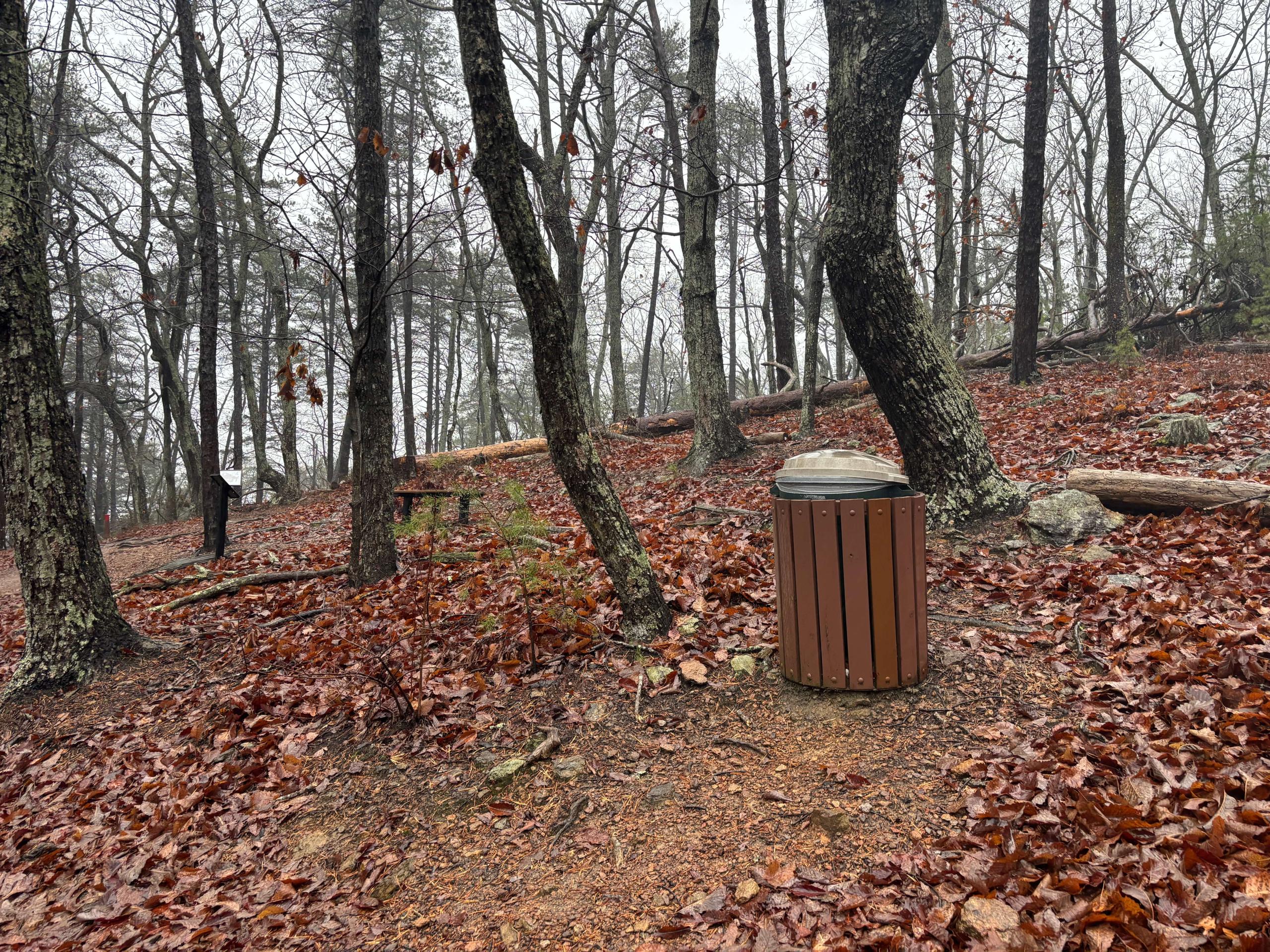 At times, Bakers Mountain Loop can be a steep trek, with more than a few breathless sections of root-snarled incline, but in keeping with its inviting base camp, there are many helpful amenities which ameliorate the climb. Early on, an enclosed trash can is ready to receive any spent trail mix bags, and there are many sturdy benches along the route for taking a quick rest break.