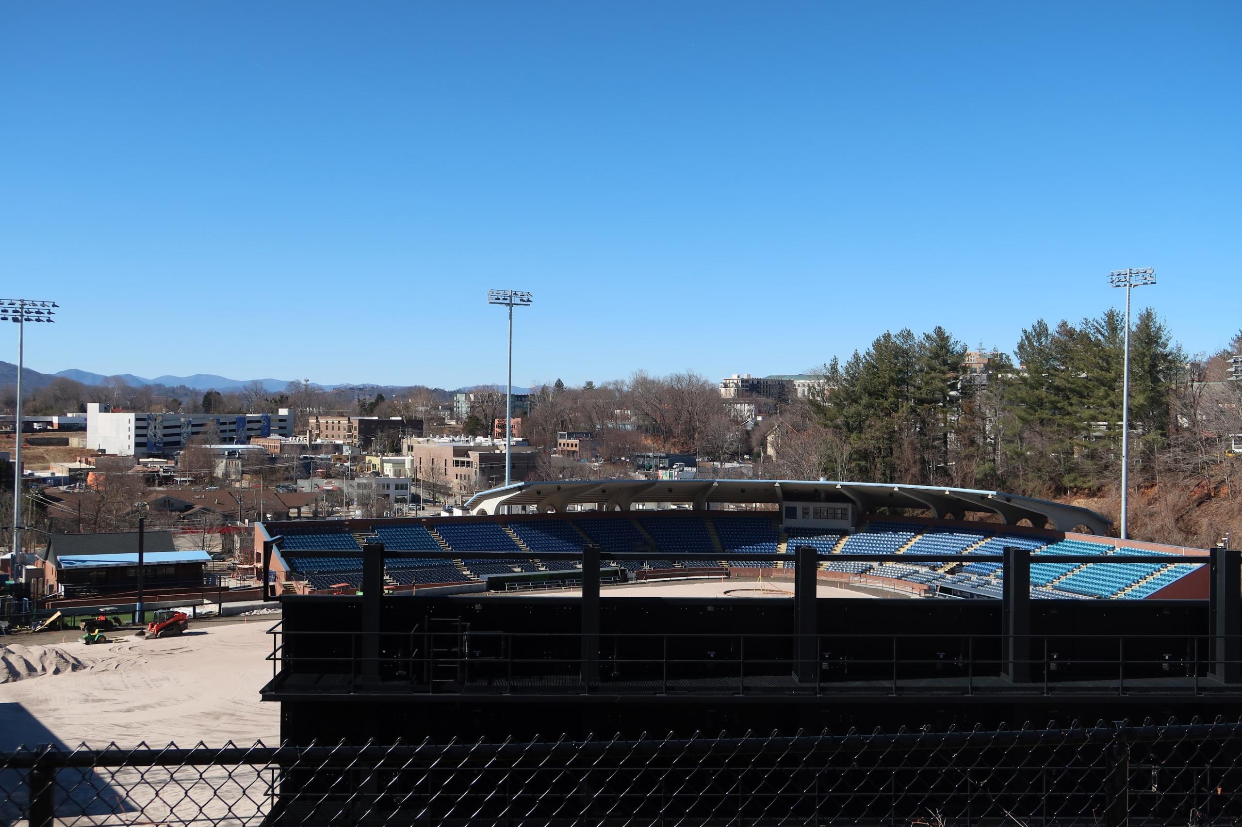 As you ascend Beaucatcher Mountain, there will be several opportunities to look out at Memorial Stadium, McCormick Field and the Asheville skyline behind it. The repeat views are a fun way to track your elevation during the climb.