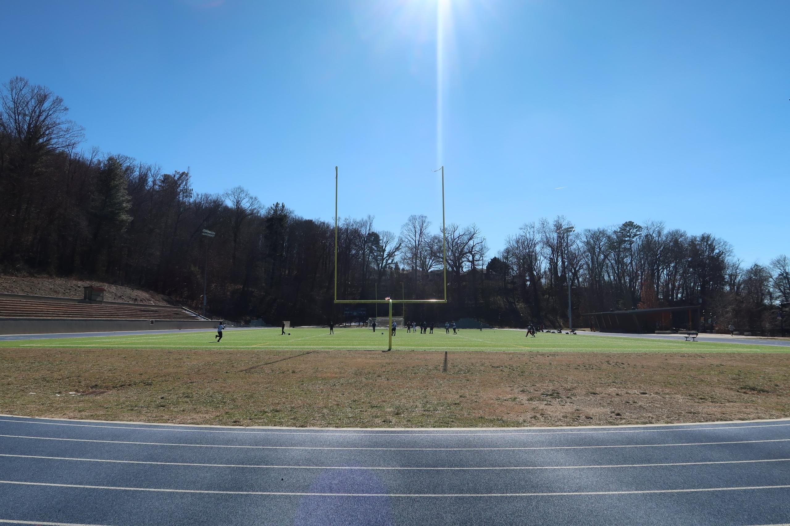 To approach Beaucatcher Mountain Trail, head into Memorial Stadium and veer left along the track. Skirt around the playground at the left hand end zone and take the pavement path on the other side of it. After a short walk, the entrance to the mountain will be marked with signage detailing the trail rules.