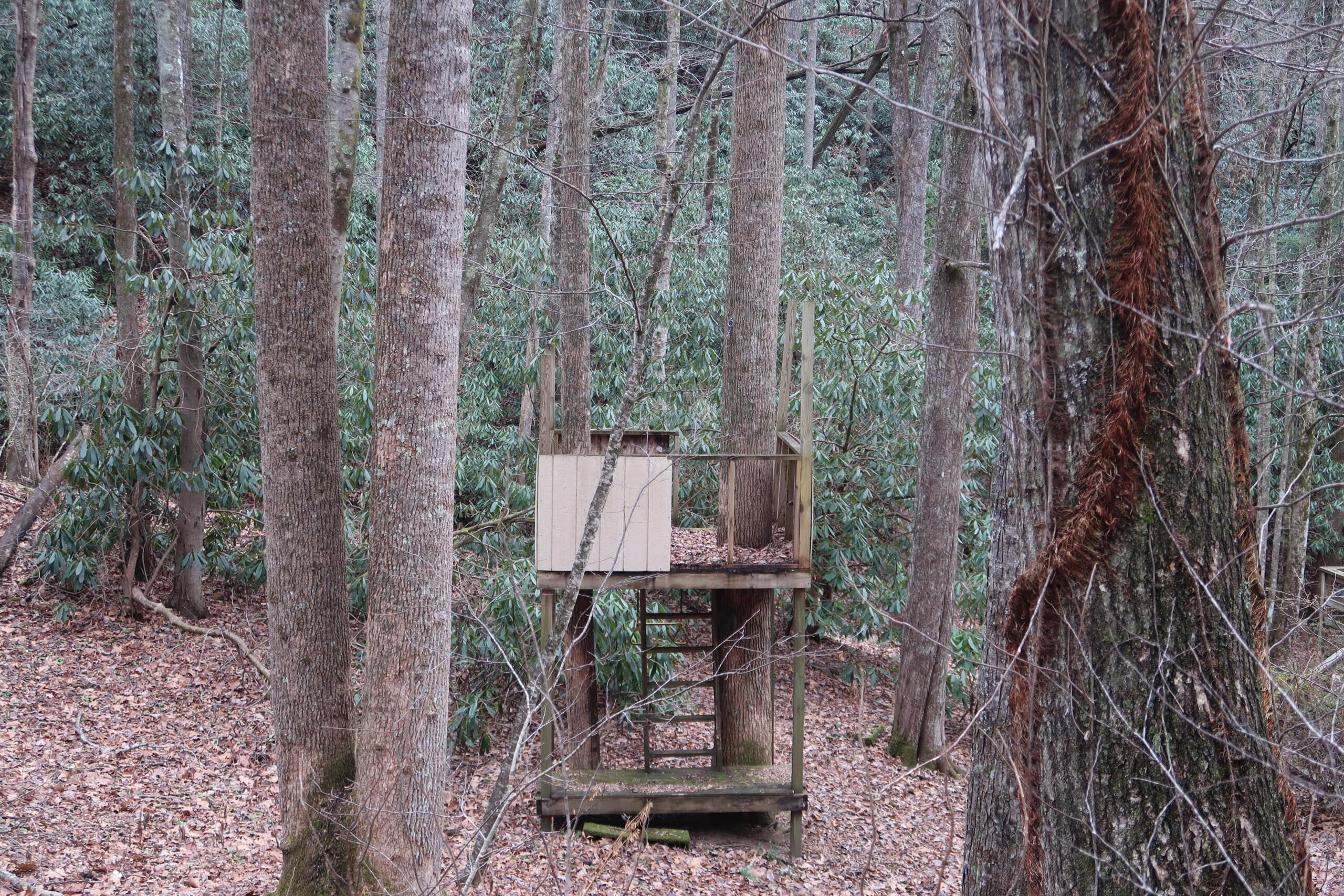Azalea is the longest segment of the loop, but most important is to keep following the green blazes. At a certain juncture, orange conservation signs will appear, but these are merely an indication of the 600 acres of the Southern Appalachian Highlands Conservancy that Christmount is nestled inside. Head right on past them.
