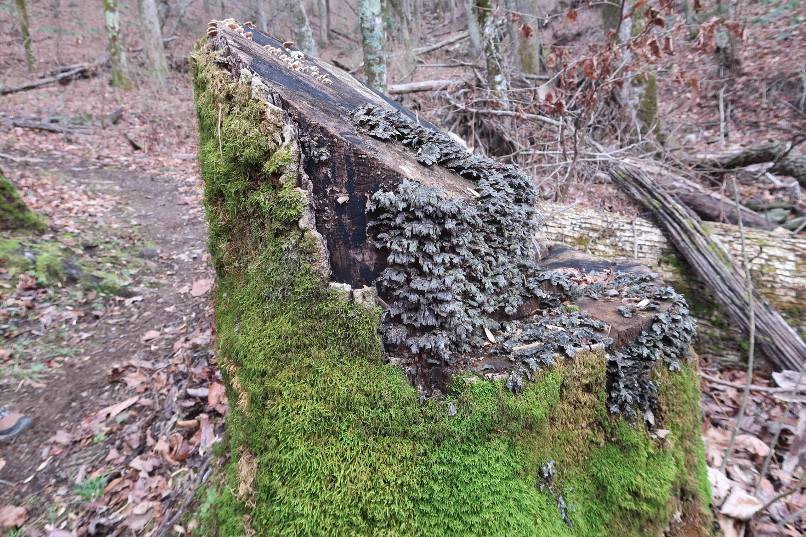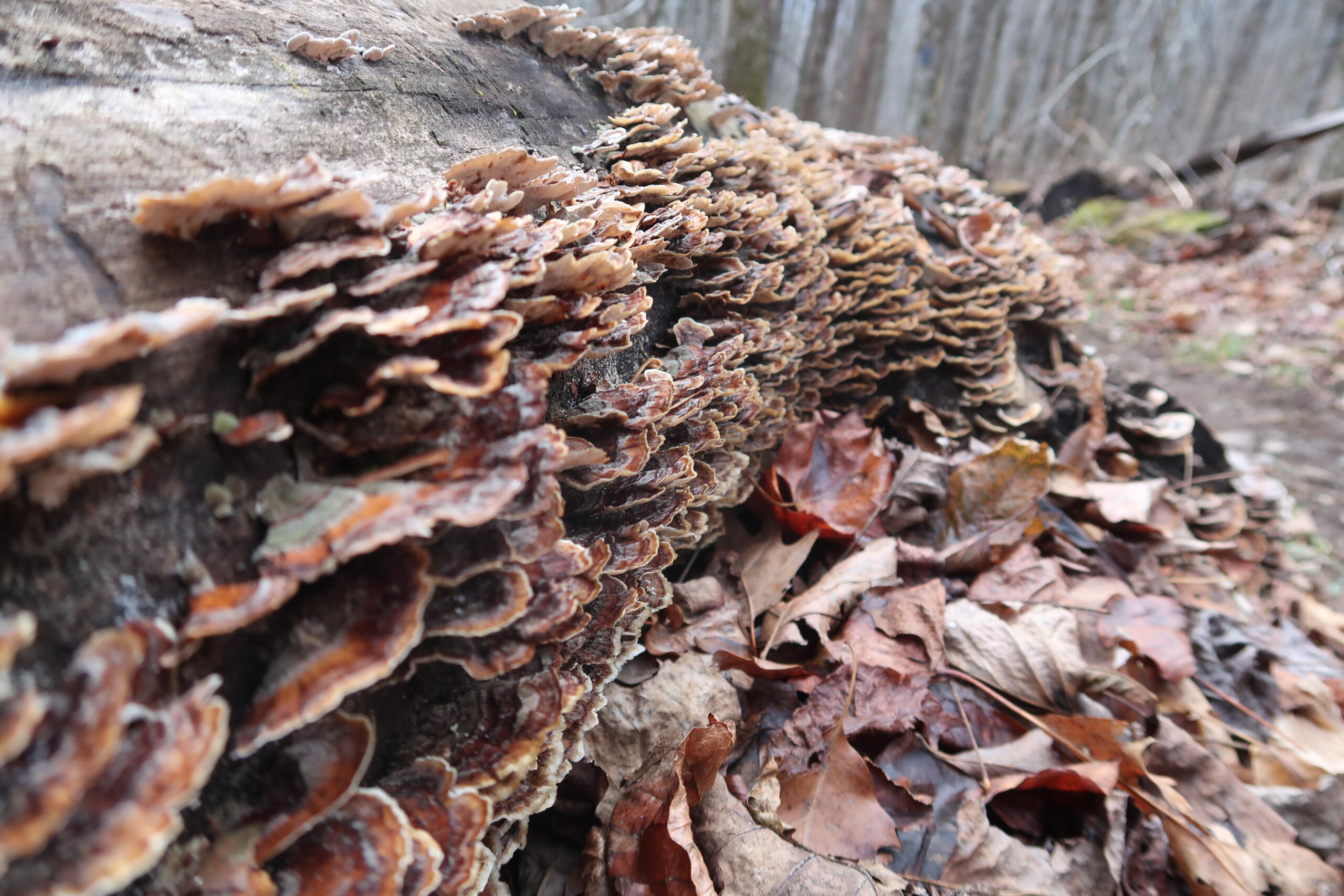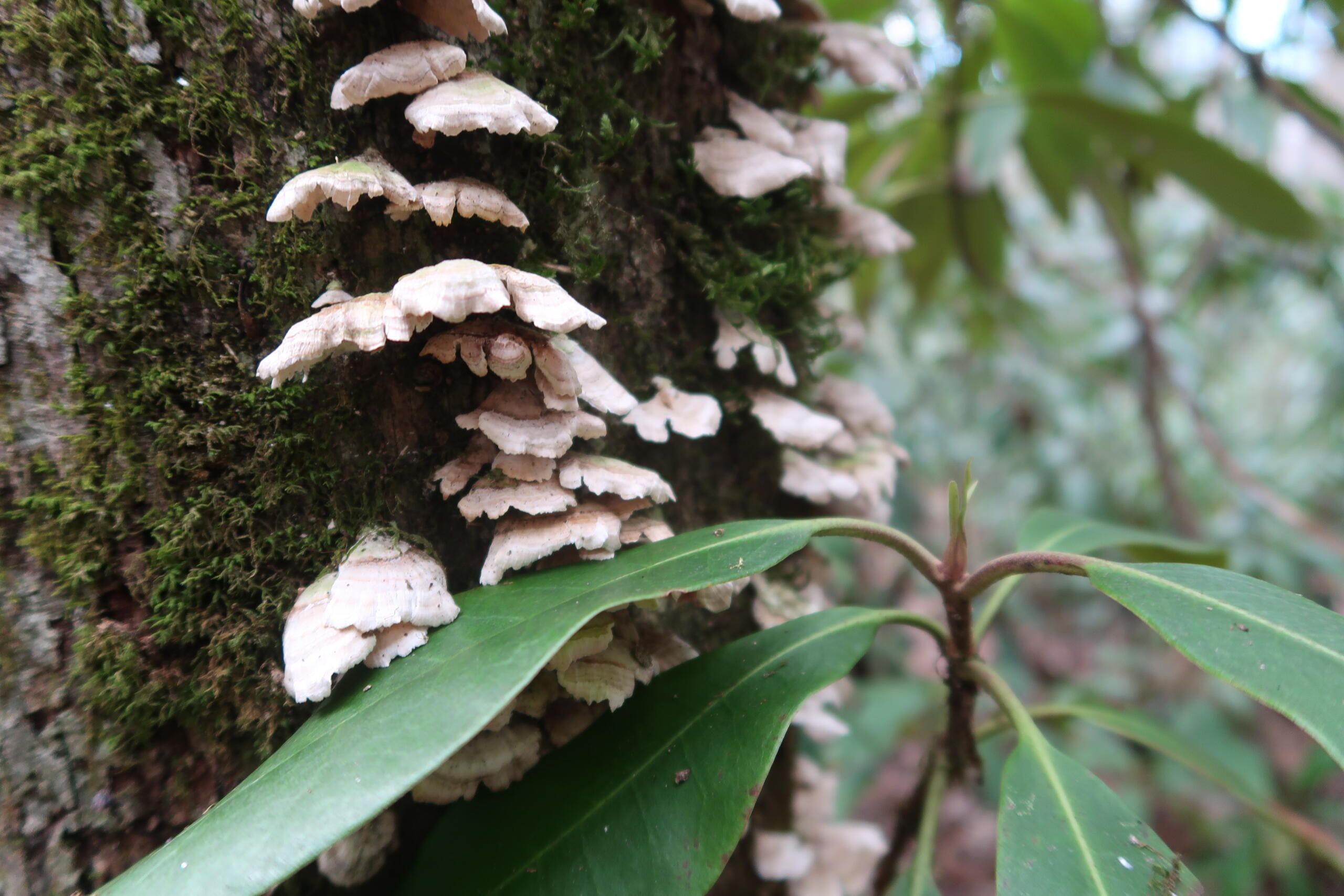 Blue Ridge is where the eclecticism of the Christmount trail system begins to show its face. The trail is gorgeous, with steps made out of woven roots and curves in the path wrought with a tumble of stones – several are painted blue, for good measure. It seemed like a different natural landmark was around every corner: after roots and rocks came fallen lumber and shelves of fungi.