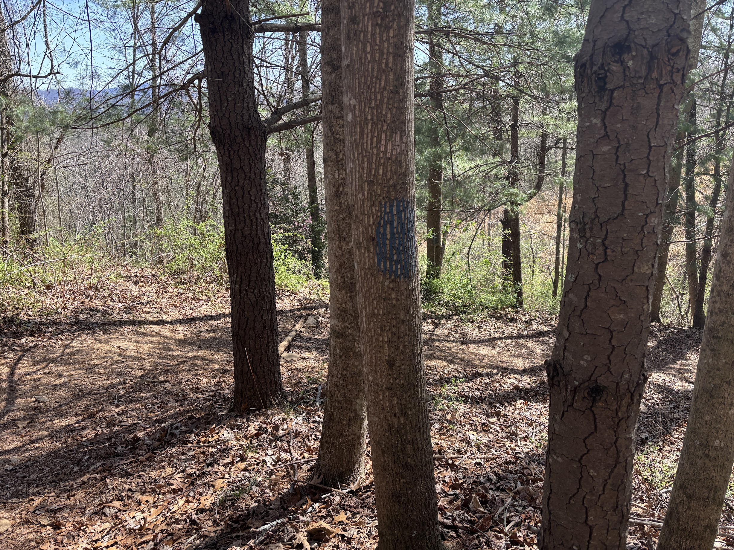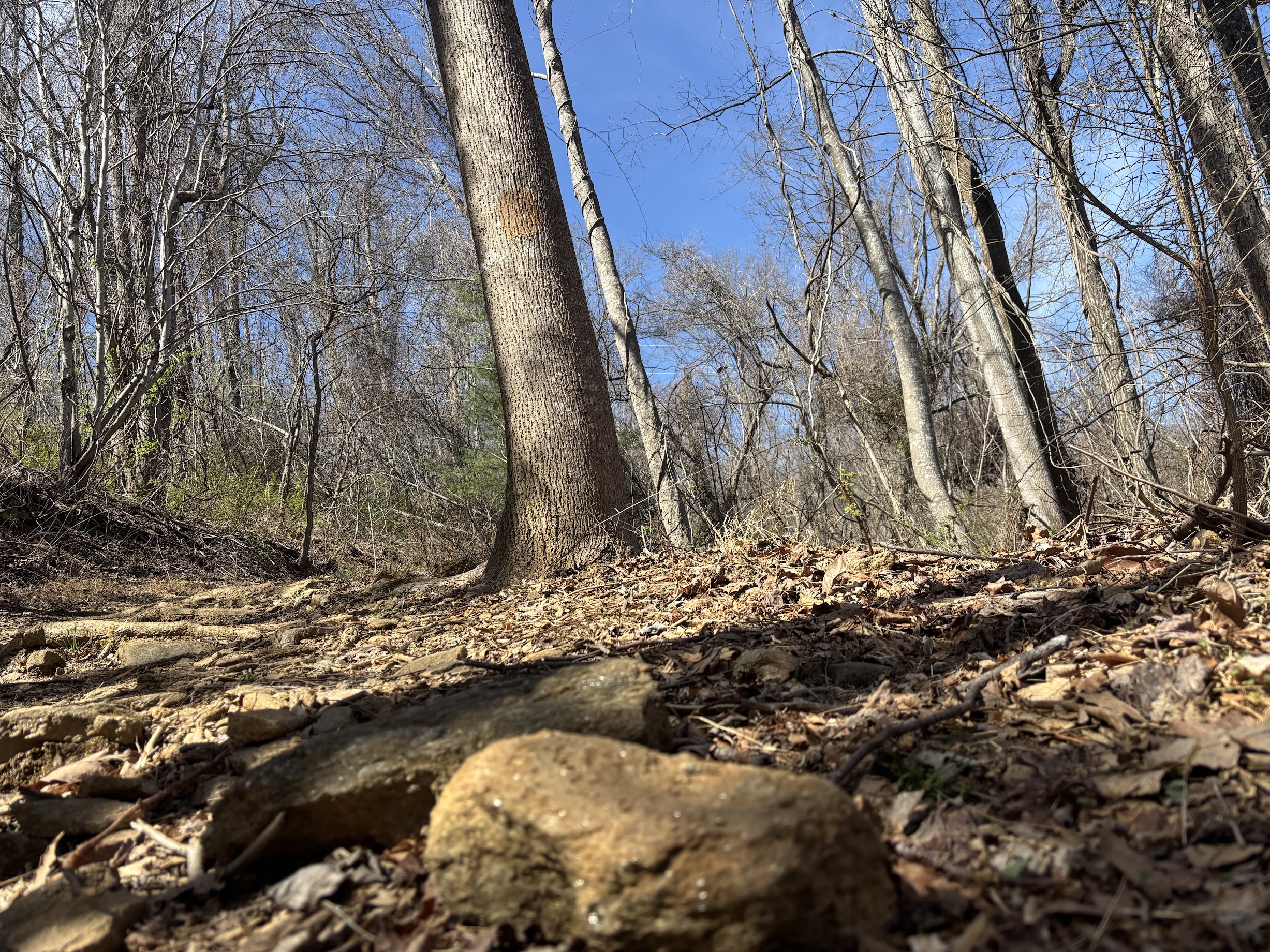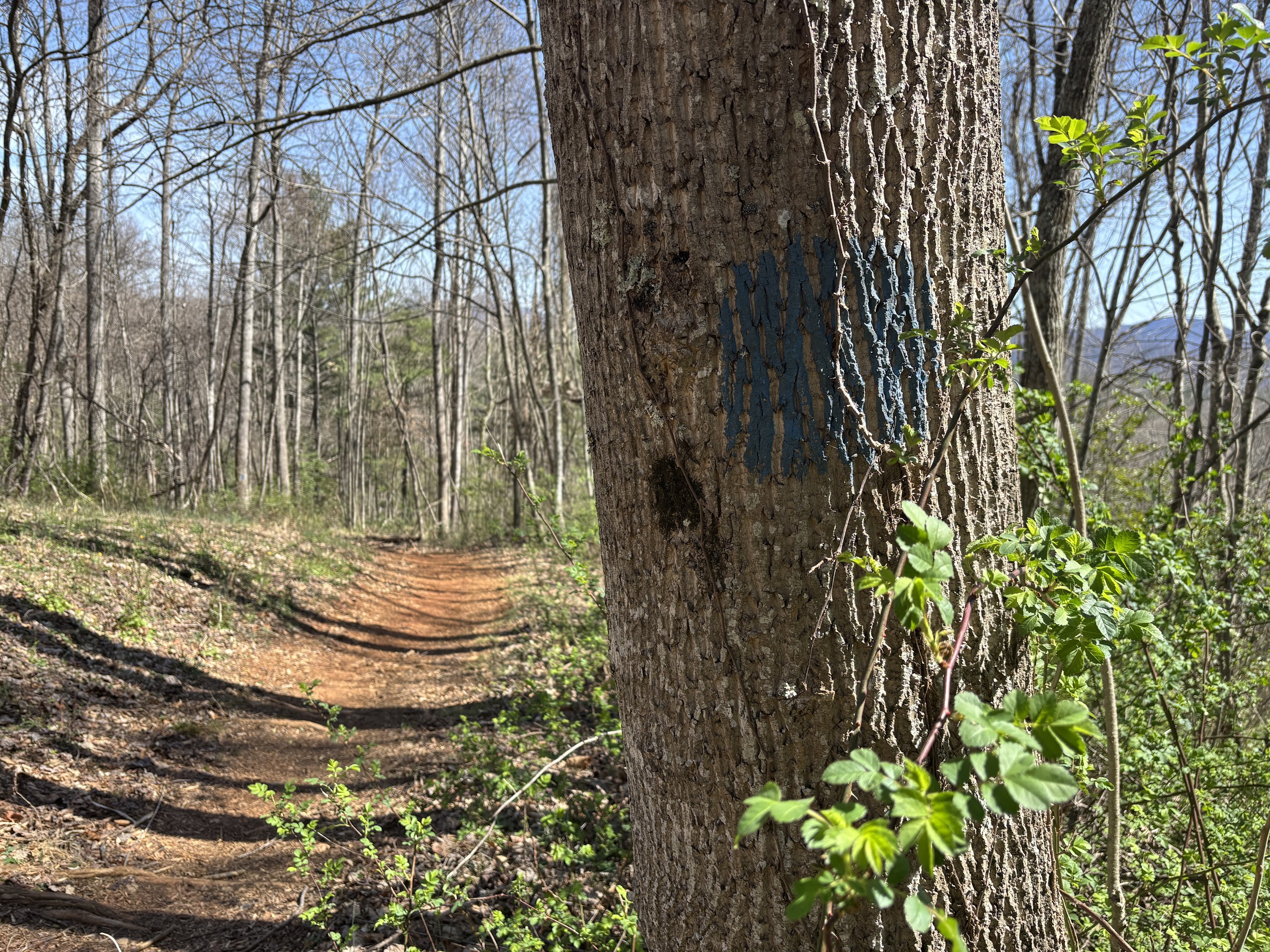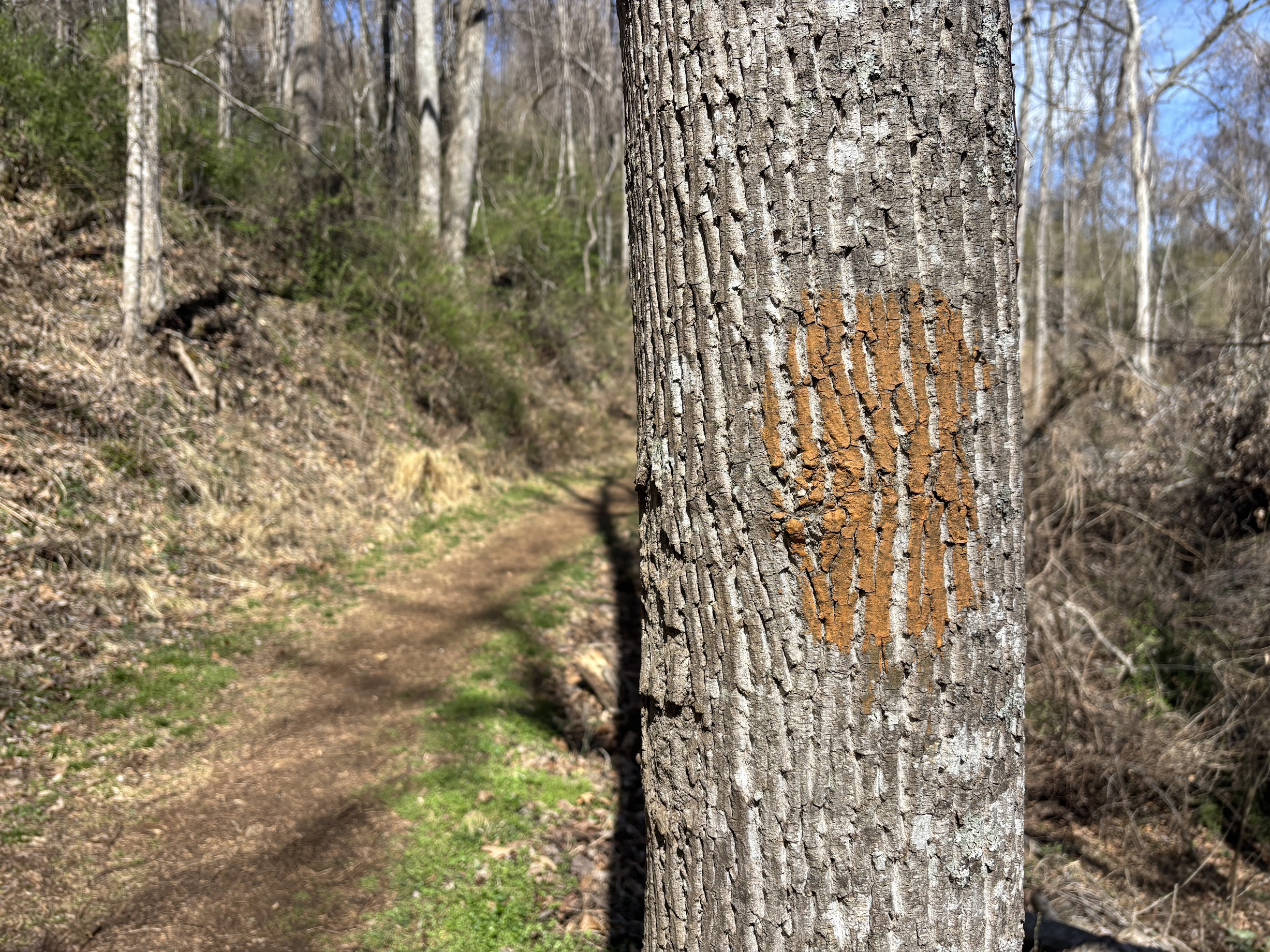 After that sojourn, there is a long, long, long descent. Walnut Way is designated with orange blazes, ensuring you will not stray off the path, but the route is unmistakable.