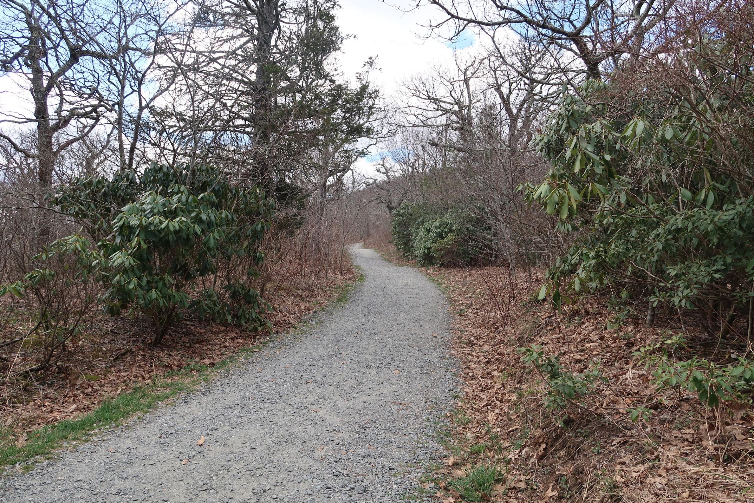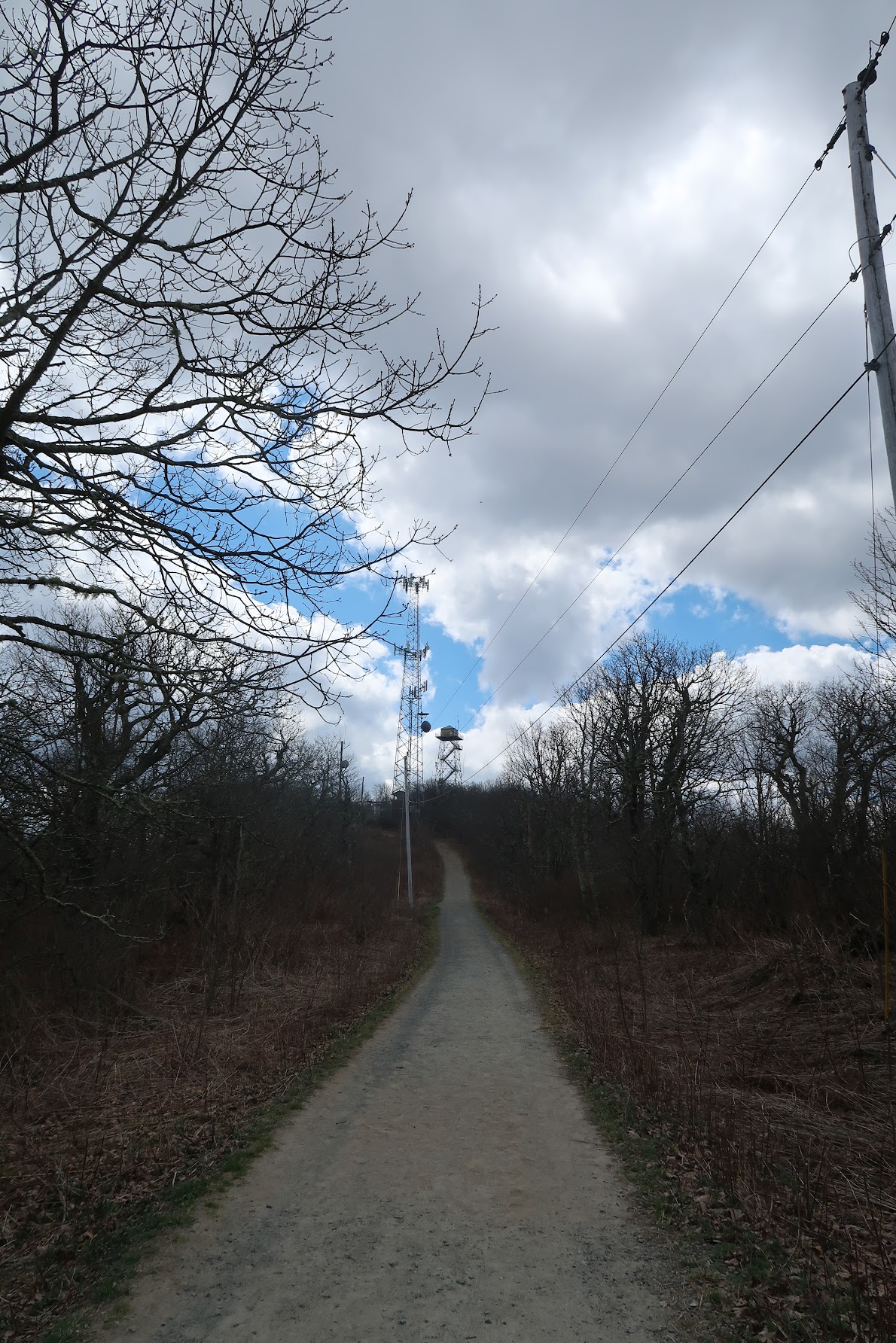 The most dramatic section of the pre-tower hike is a straight shot underneath the power lines. With the tower looming in the distance, hikers will march toward their destination along a gradual gravel slope.
