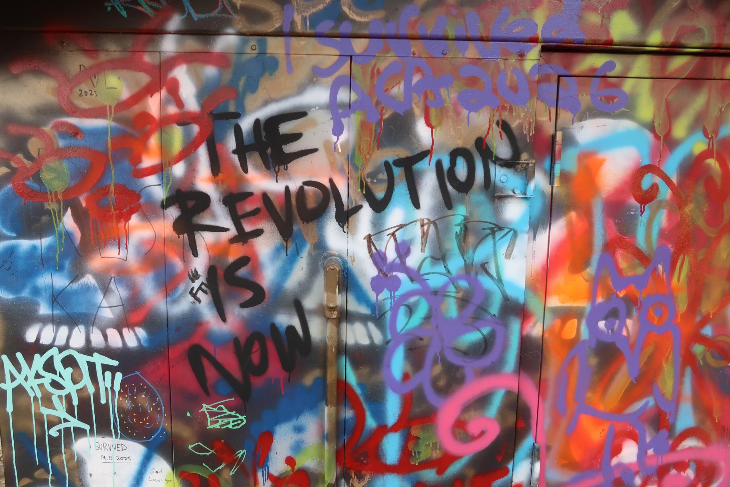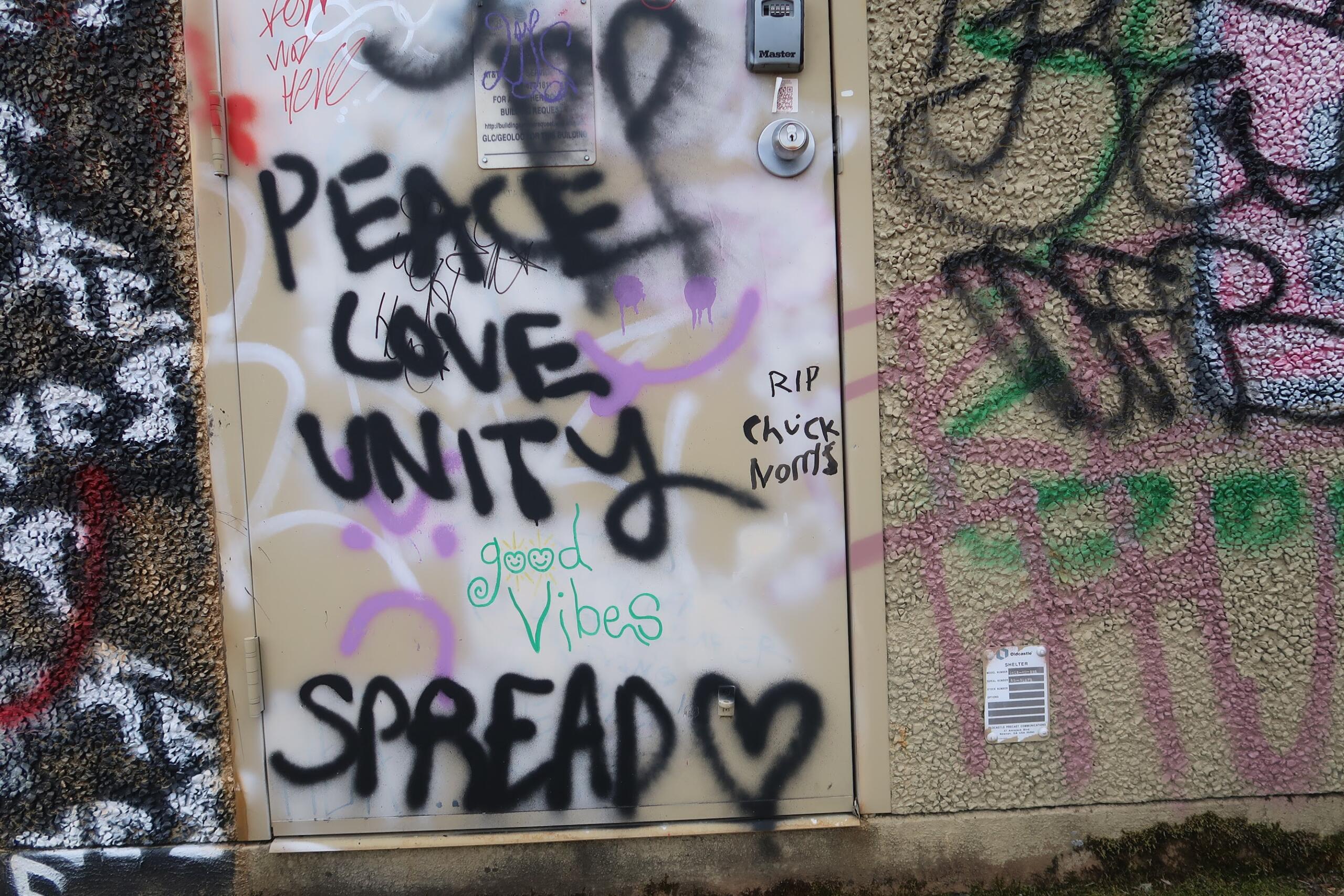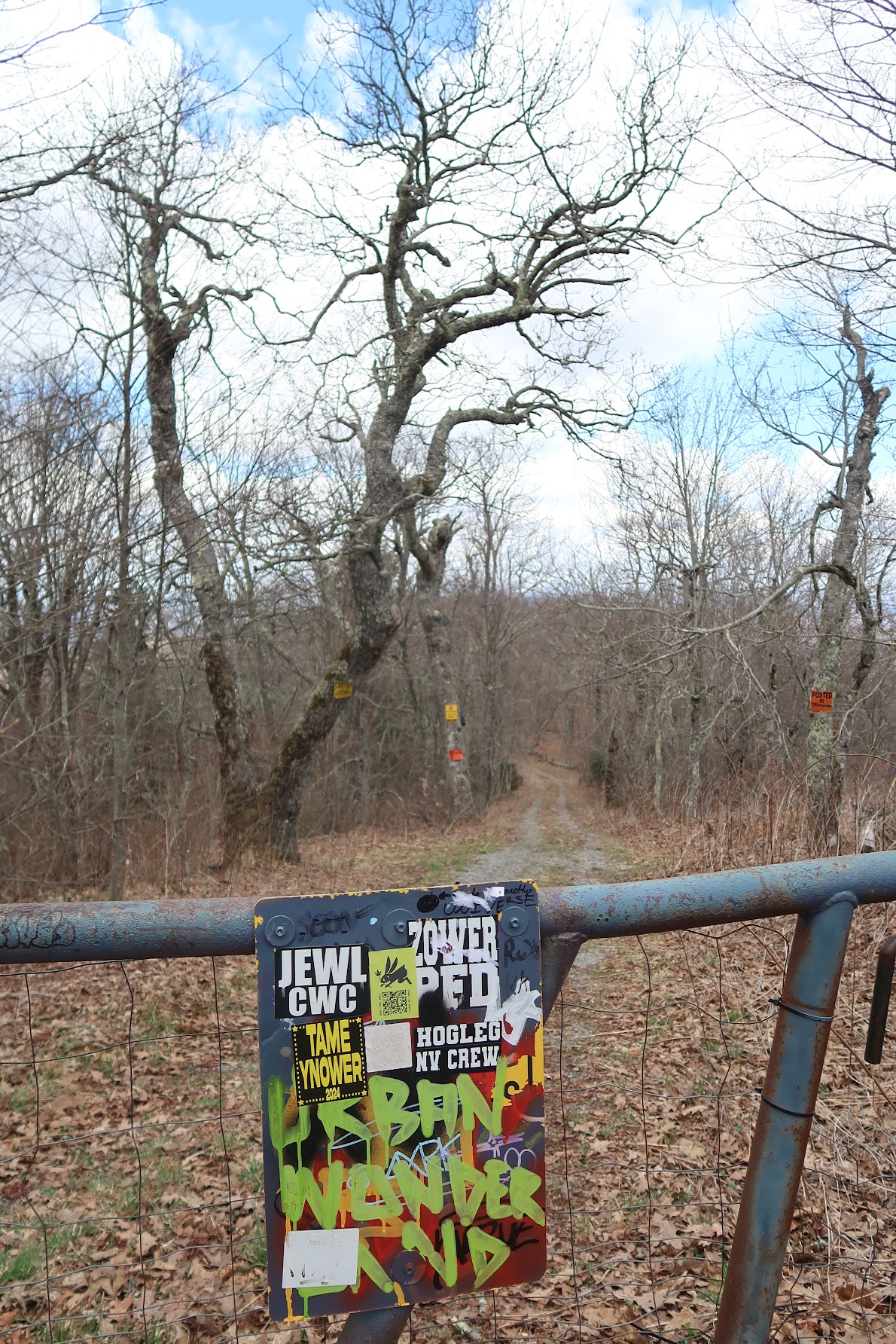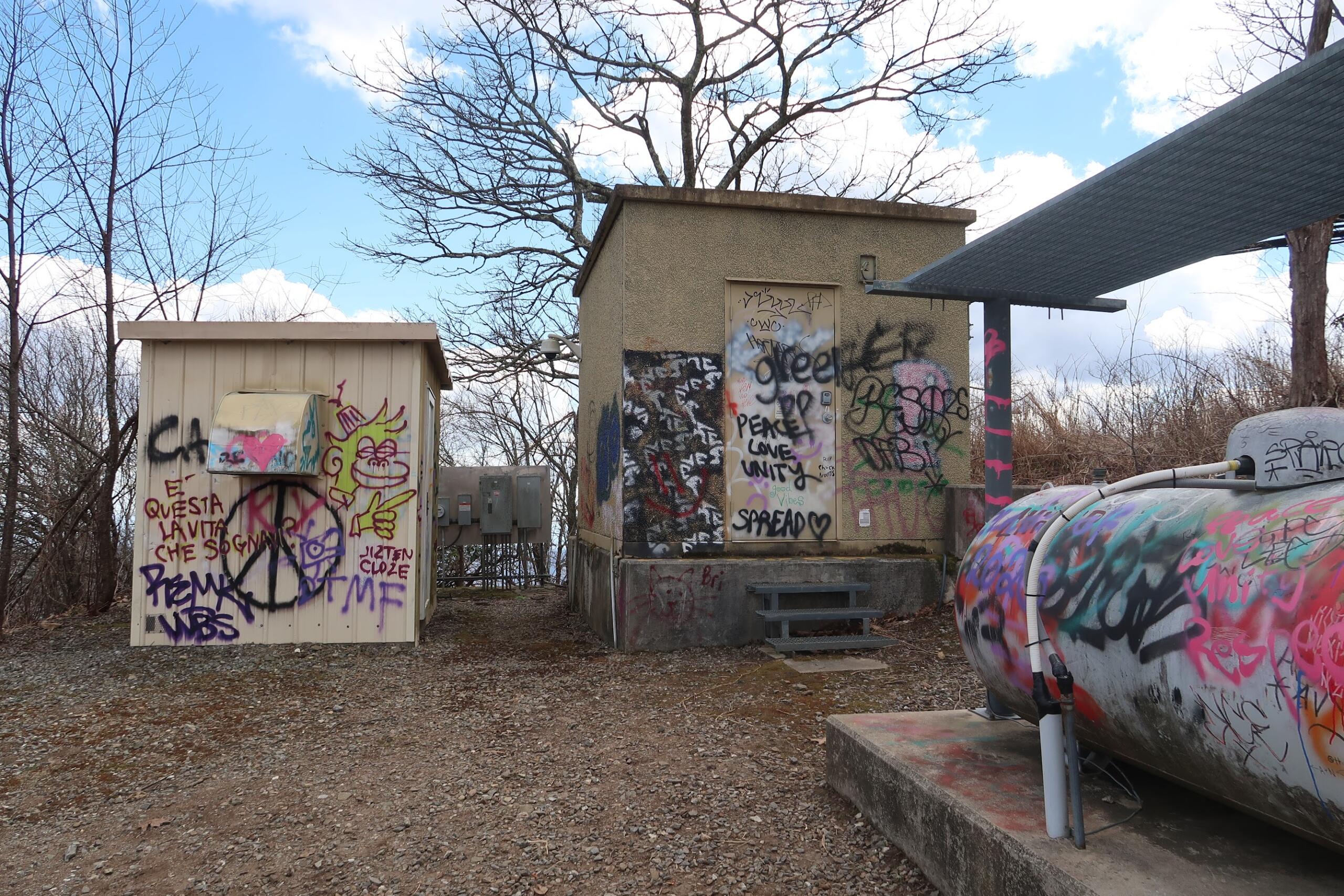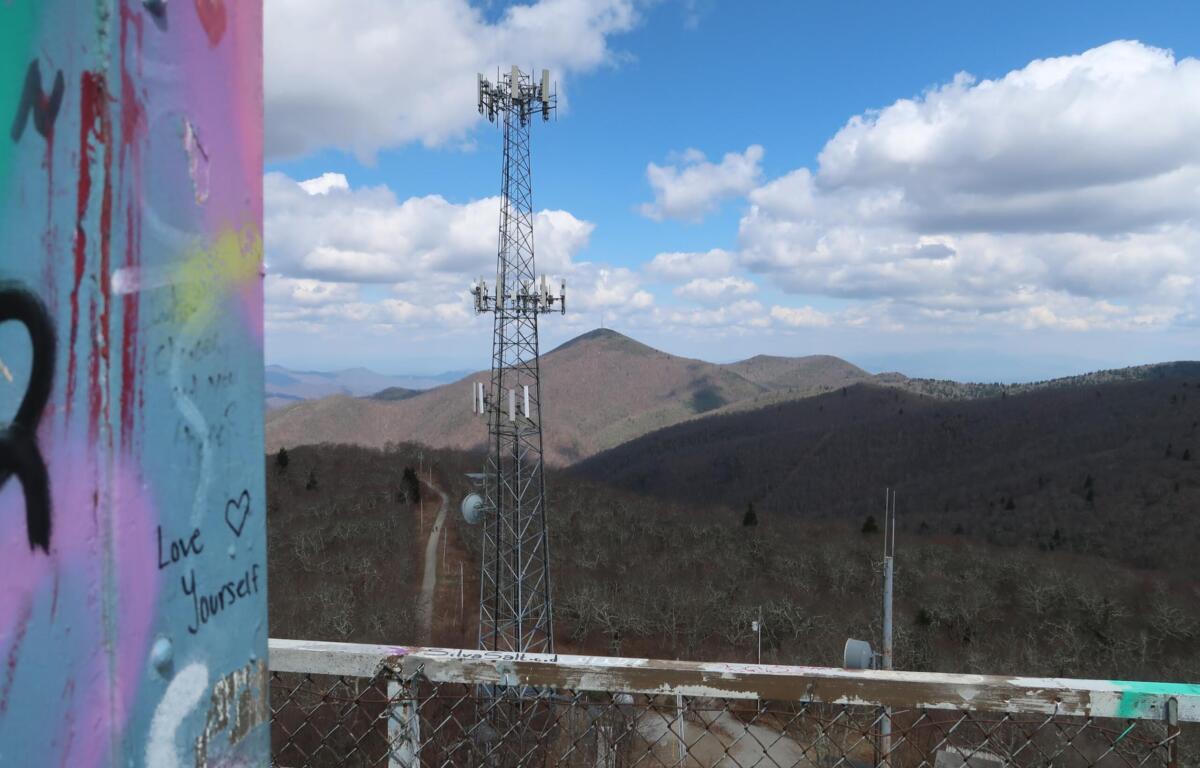 Fryingpan Mountain Lookout Tower could be considered a modern art museum as much as a Blue Ridge Parkway hiking staple. The base of the tower and its accompanying electrical sheds are covered with colorful graffiti, from contemporary additions like “RIP Chuck Norris” and “67 67 67 67” to tags a year or older.