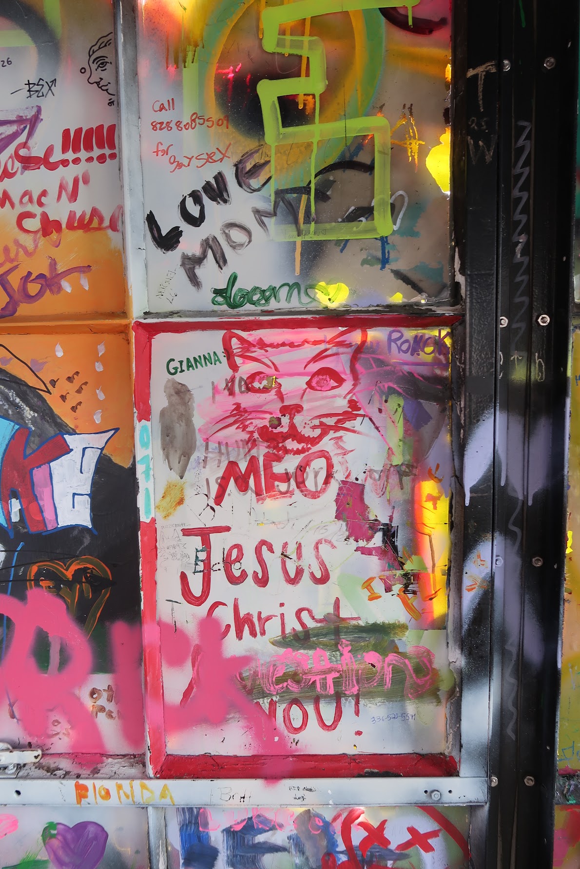 The top of the tower is an explosion of colorful initialing. The cab is now vacant of its firewatching gear, but it is filled with artwork, vandalism and proud autographs. My personal favorite tag was a cat in red paint, captioned a simple “MEOW.” The views, of course, are spectacular.