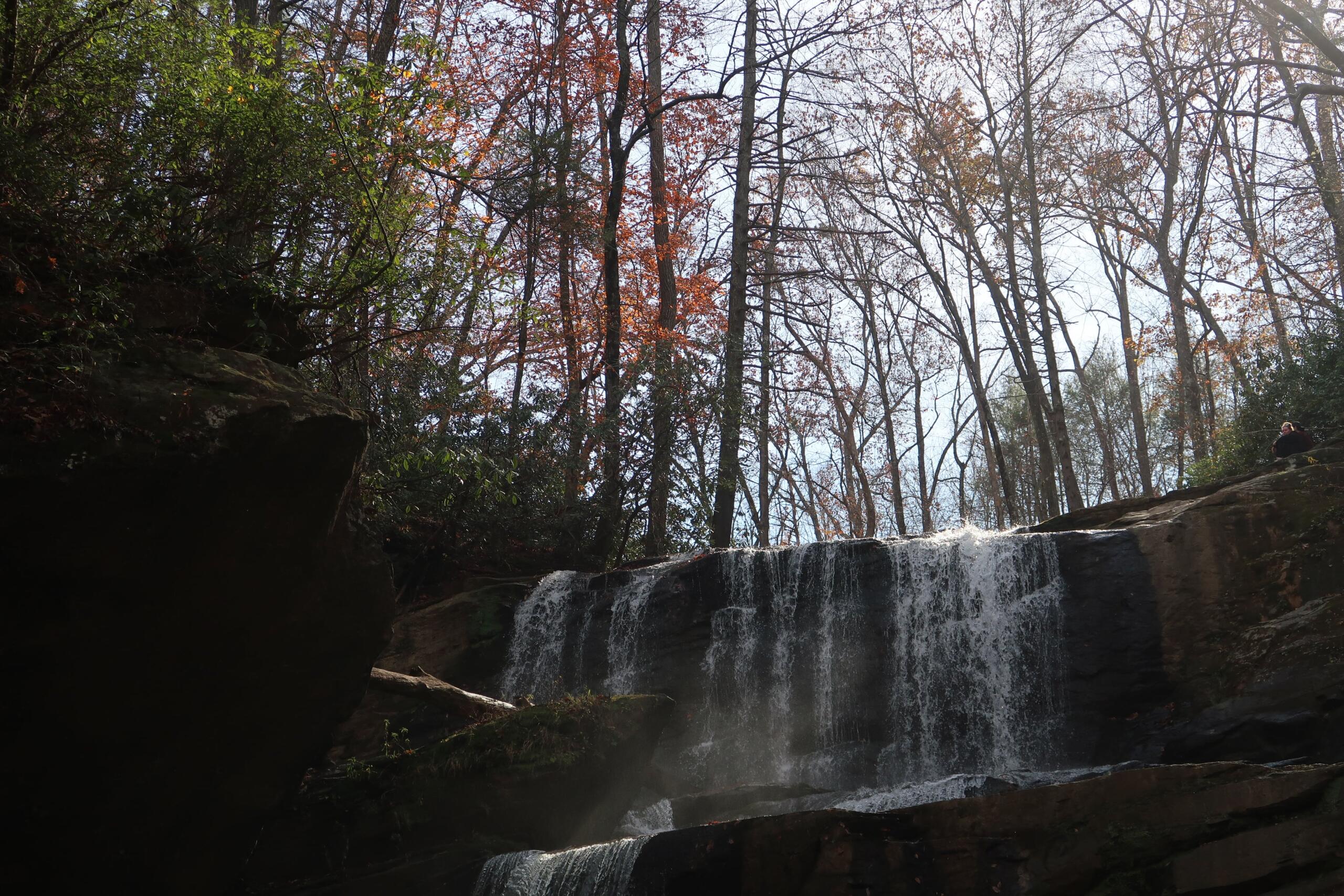 SALUDA, N.C. (828newsNOW) — Only a few minutes off the interstate in the Green River Gorge are a pair of twin waterfall hikes. While Big Bradley Falls bears the distinction of signage and a parking area, across the street, Little Bradley Falls offers a short, rewarding trip to a breathtaking 50-foot cascade. While hikers should prepare for several creek crossings and tricky terrain, the mile-long trek is a worthwhile adventure.