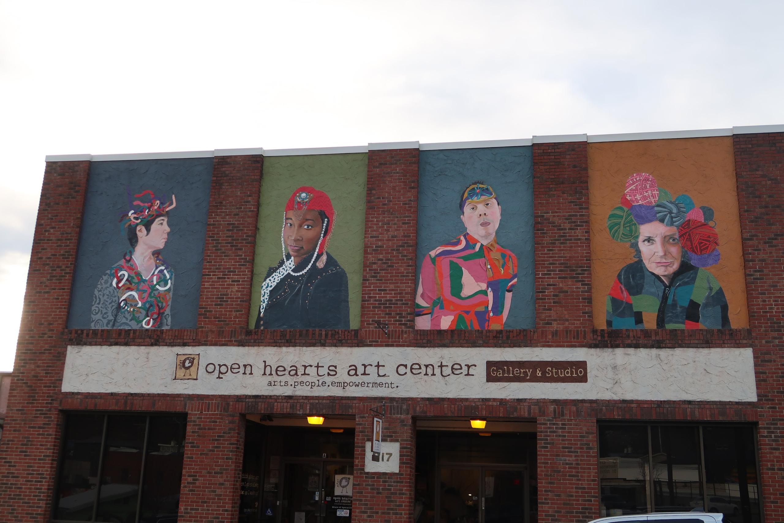 The next stop on the trail is the building next to “Bower Power,” Open Hearts Arts Center, located at 217 Coxe Ave. Open Hearts is decorated with a four portrait series by Ian Wilkinson called “Arts. People. Empowerment.,” styled after photographs of Open Hearts artists.