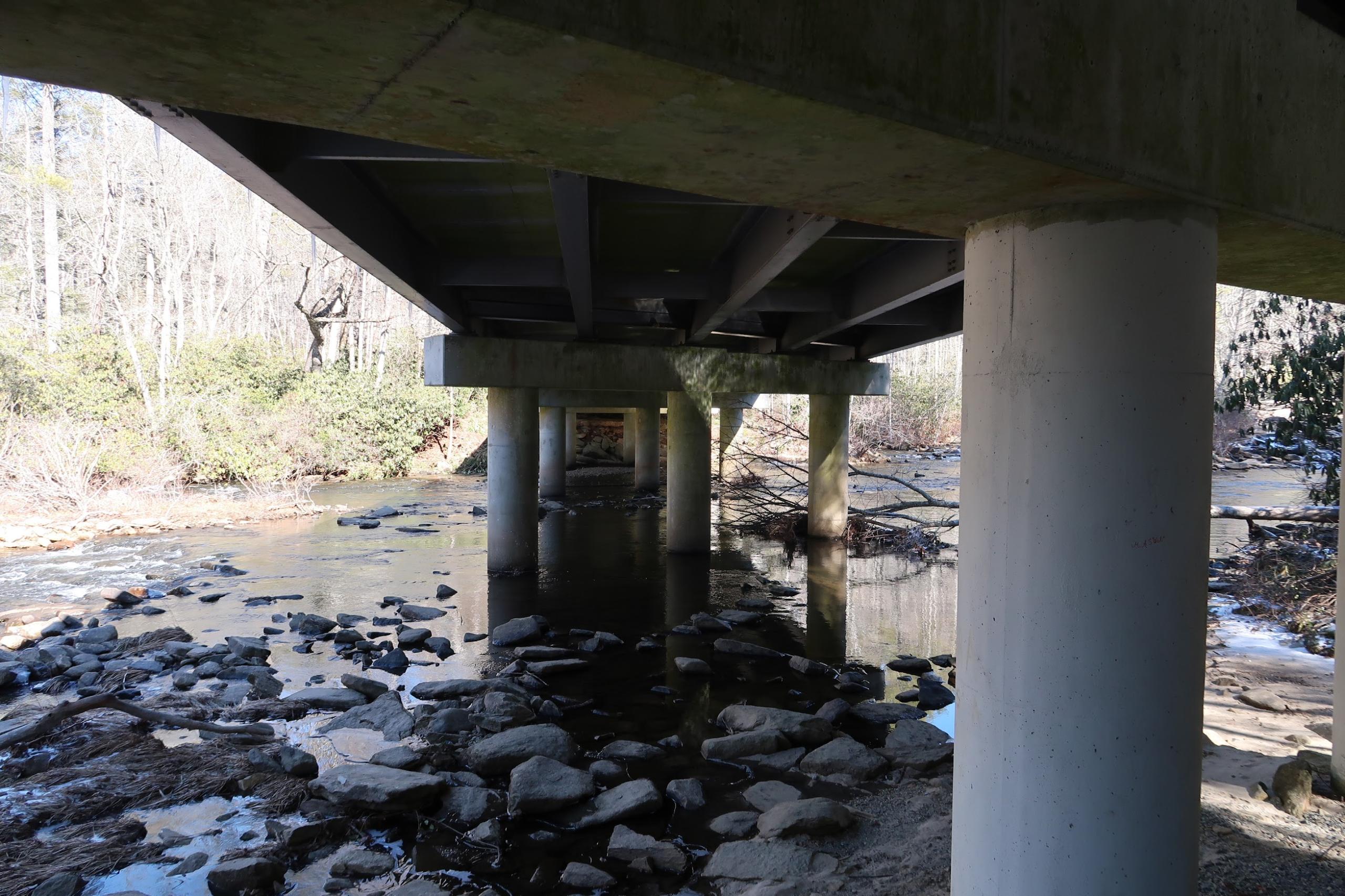 After pulling into DuPont State Recreational Forest, you will want to take a right turn off Staton Road toward the signs marked for Hooker Falls and Triple Falls access. Drive through to the back parking lot for Triple Falls. You should find a spot in the gravel lot, cordoned off by a host of wooden fences. After parking, head down toward the bridge.