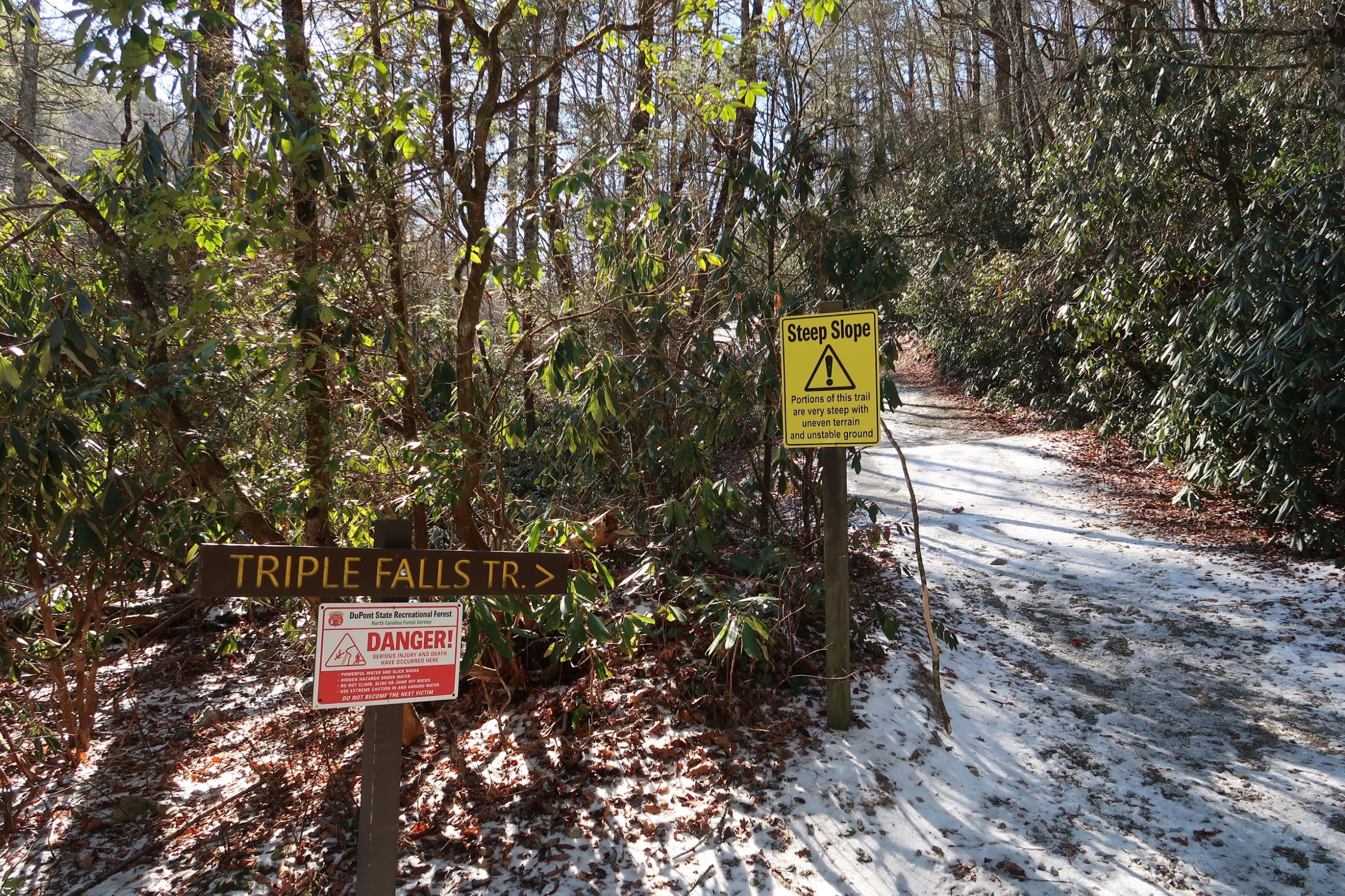 - Triple Falls Trail is located in DuPont State Recreational Forest. If visiting during winter months, check what trails are open or closed at www.ncagr.gov/divisions/nc-forest-service/state-forests/dupont-state-recreational-forest/closures