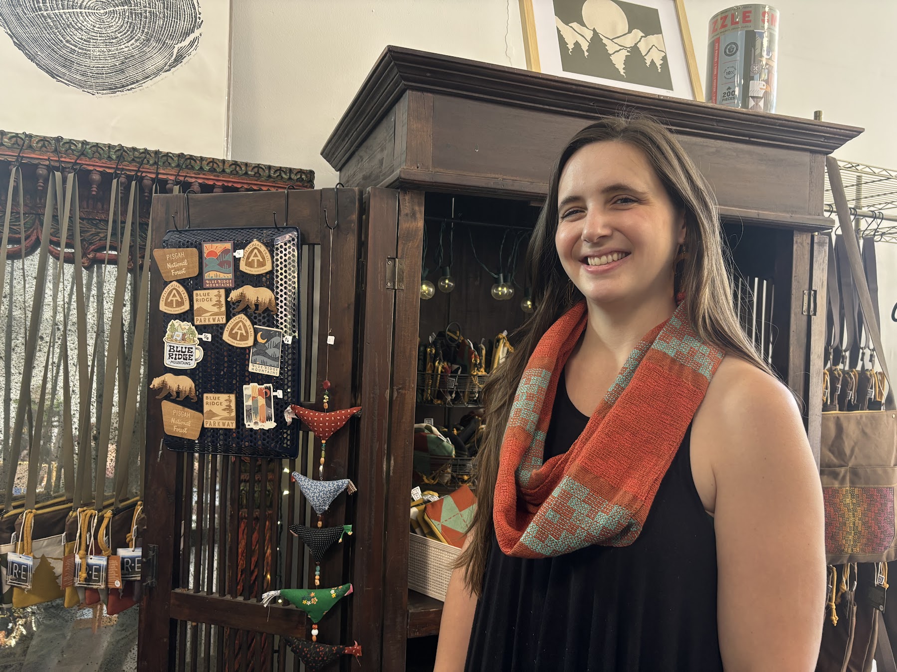 Rachel Aughtry is a fiber artist and owner of Rachel Elise Studio, a Mars Hill boutique featuring her work, all woven from natural materials and featuring designs inspired by the natural world.
