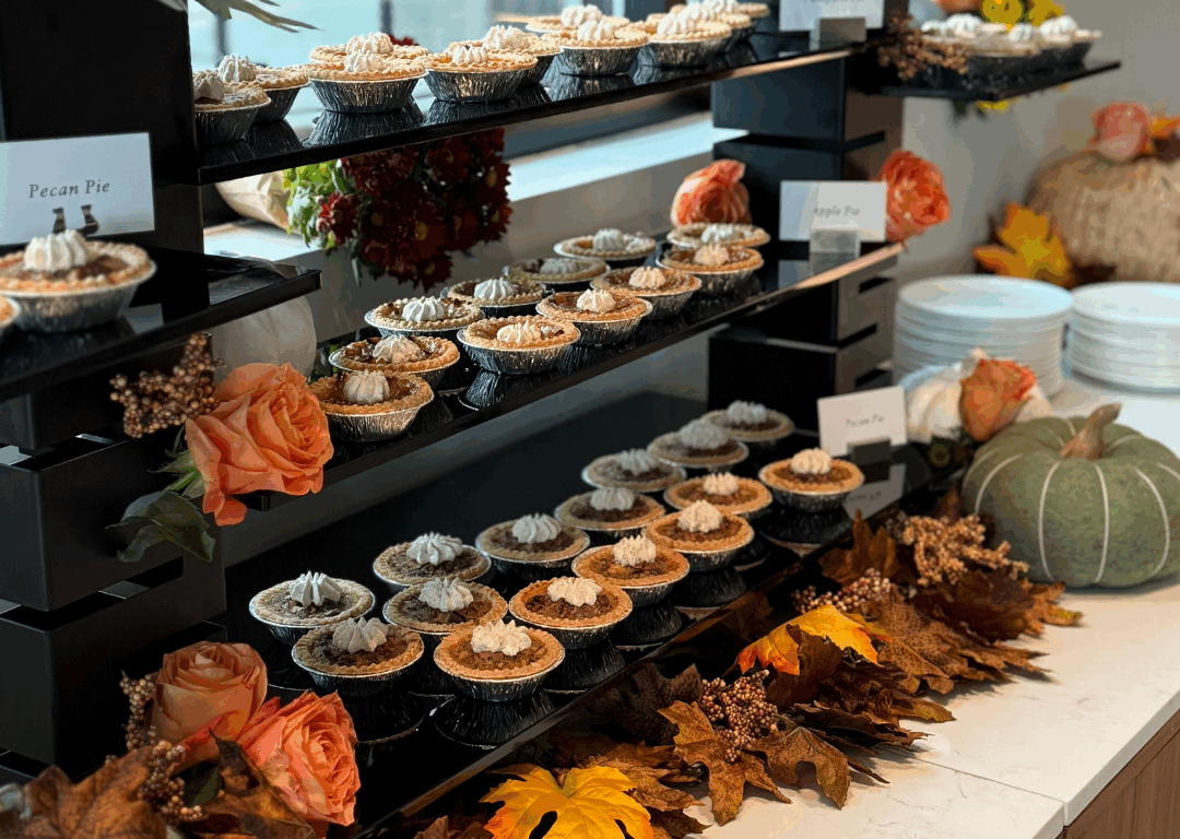 According to a press release, “the culinary team will prepare a classic holiday spread featuring Joyce Farms roasted turkey, honey-glazed ham, seasonal sides and chef’s holiday desserts. Non-alcoholic beverages are included, with complimentary hot chocolate and hot apple cider for kids. A full bar with cocktails, beer and wine will be available for purchase separately.”