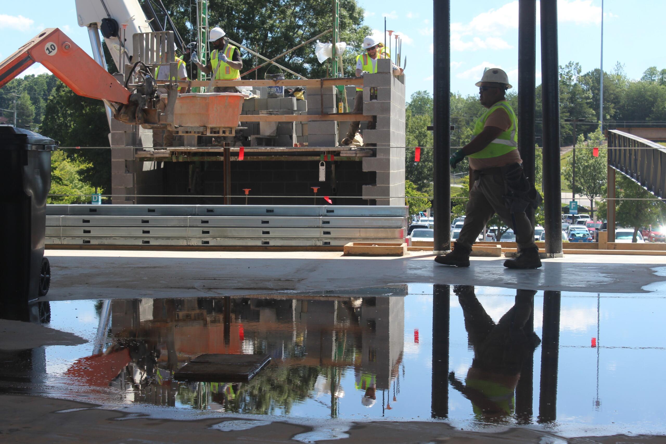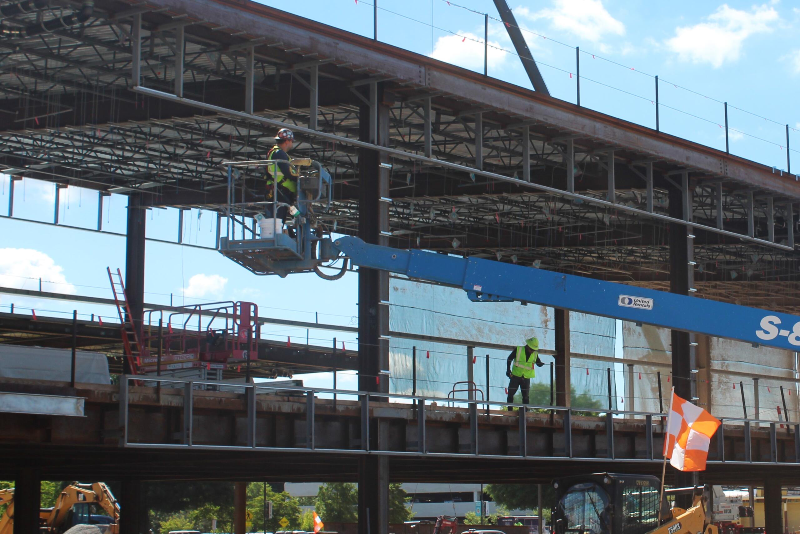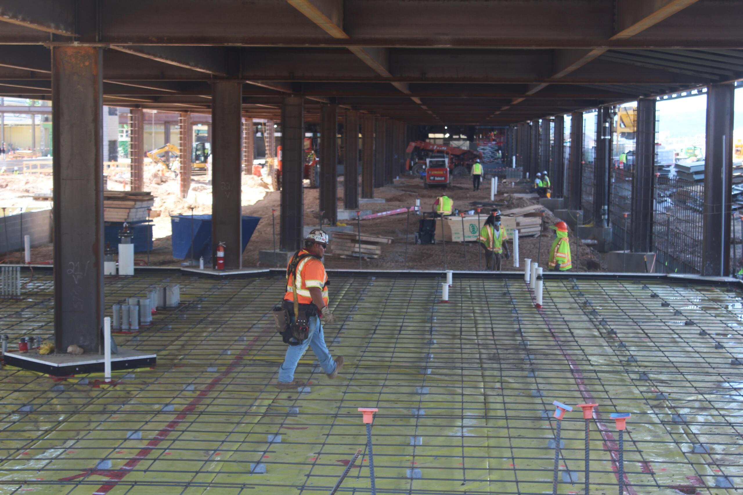 For now, it’s an unfinished skeleton of steel girders holding up a cold concrete floor and a shady ceiling full of exposed pipes and dangling wires. A cool breeze makes it a dusty sanctuary on a warm June morning.