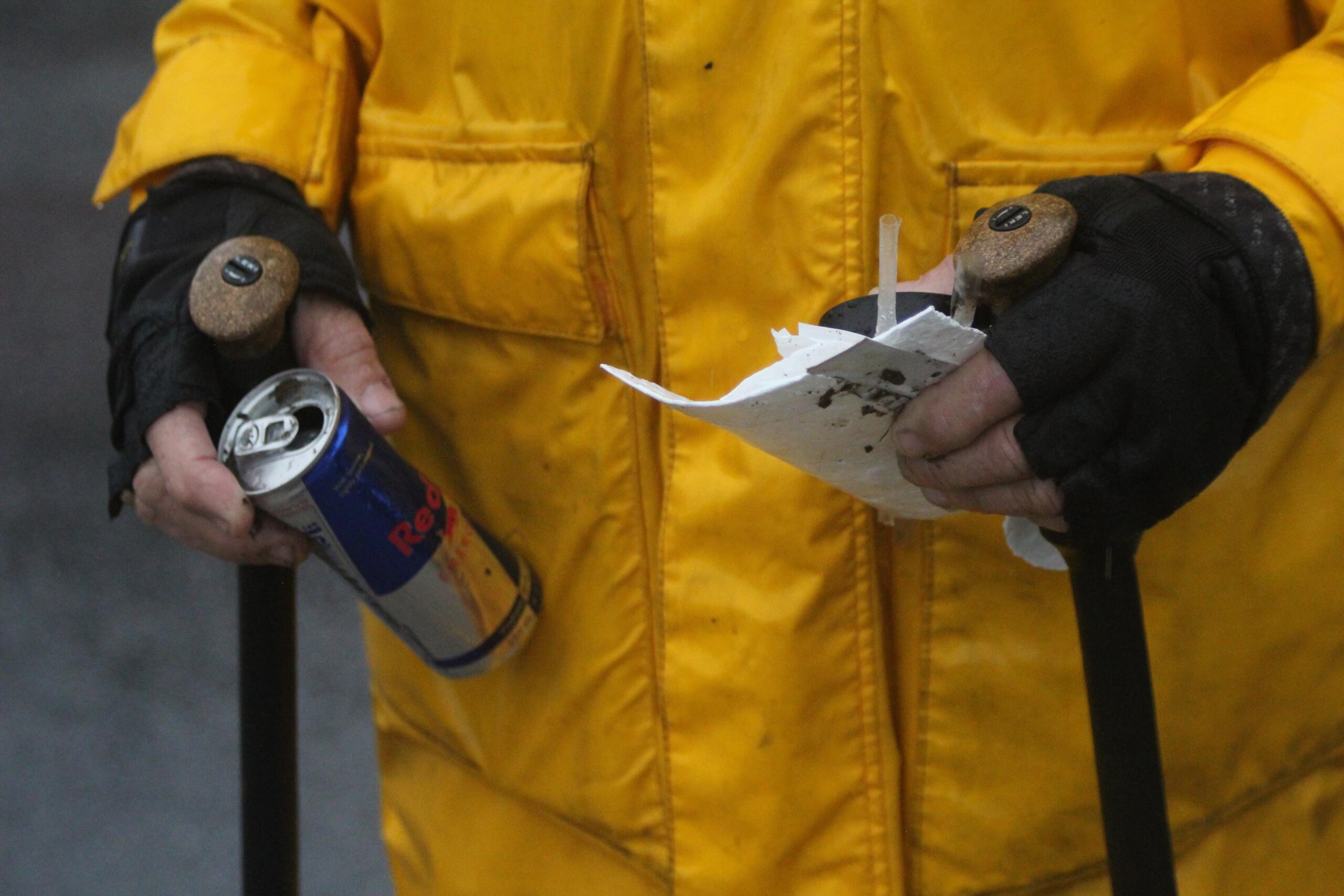 In the pouring rain on Thursday, he talked about the fast food joints he blames for a good amount of the fresh litter he sees.