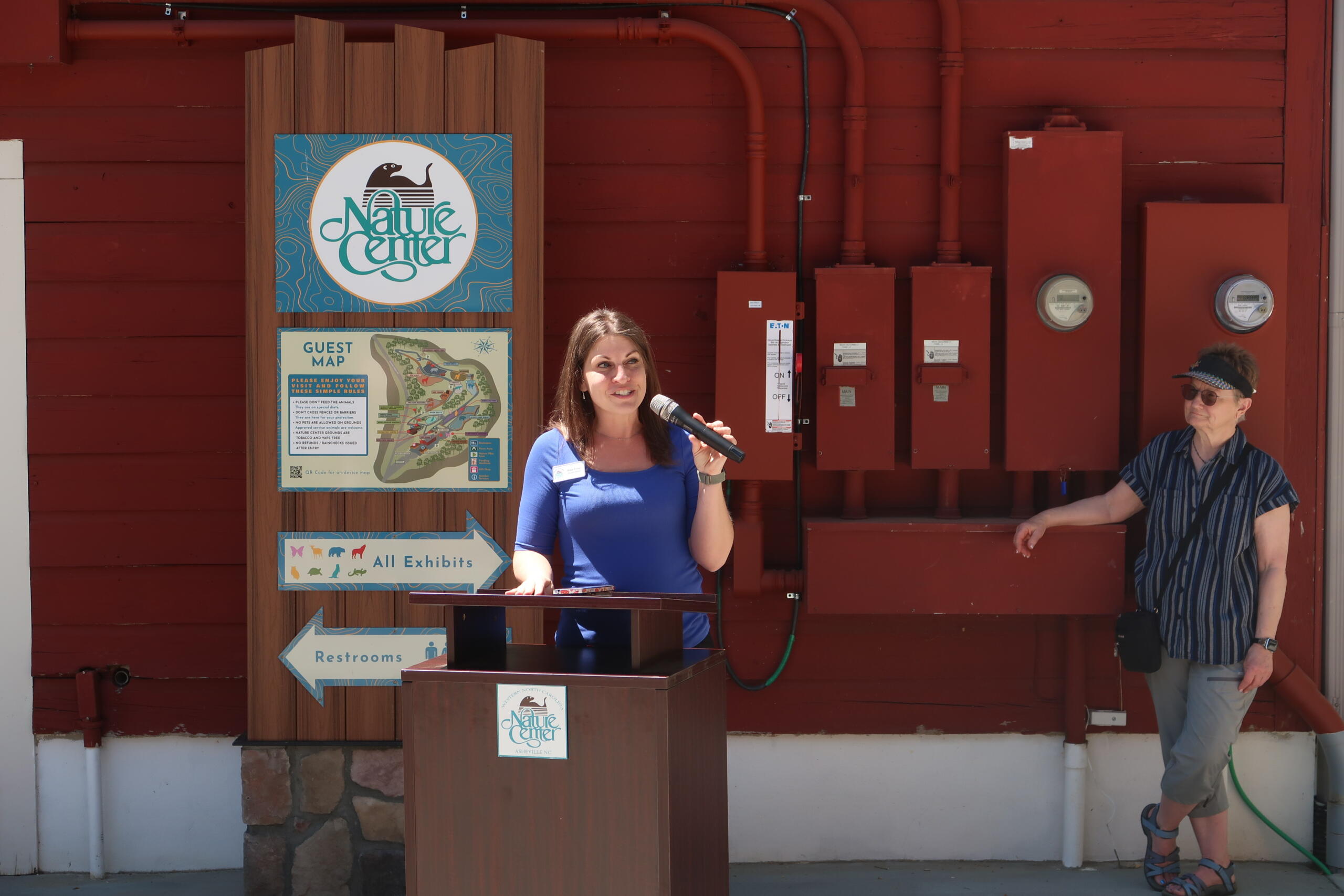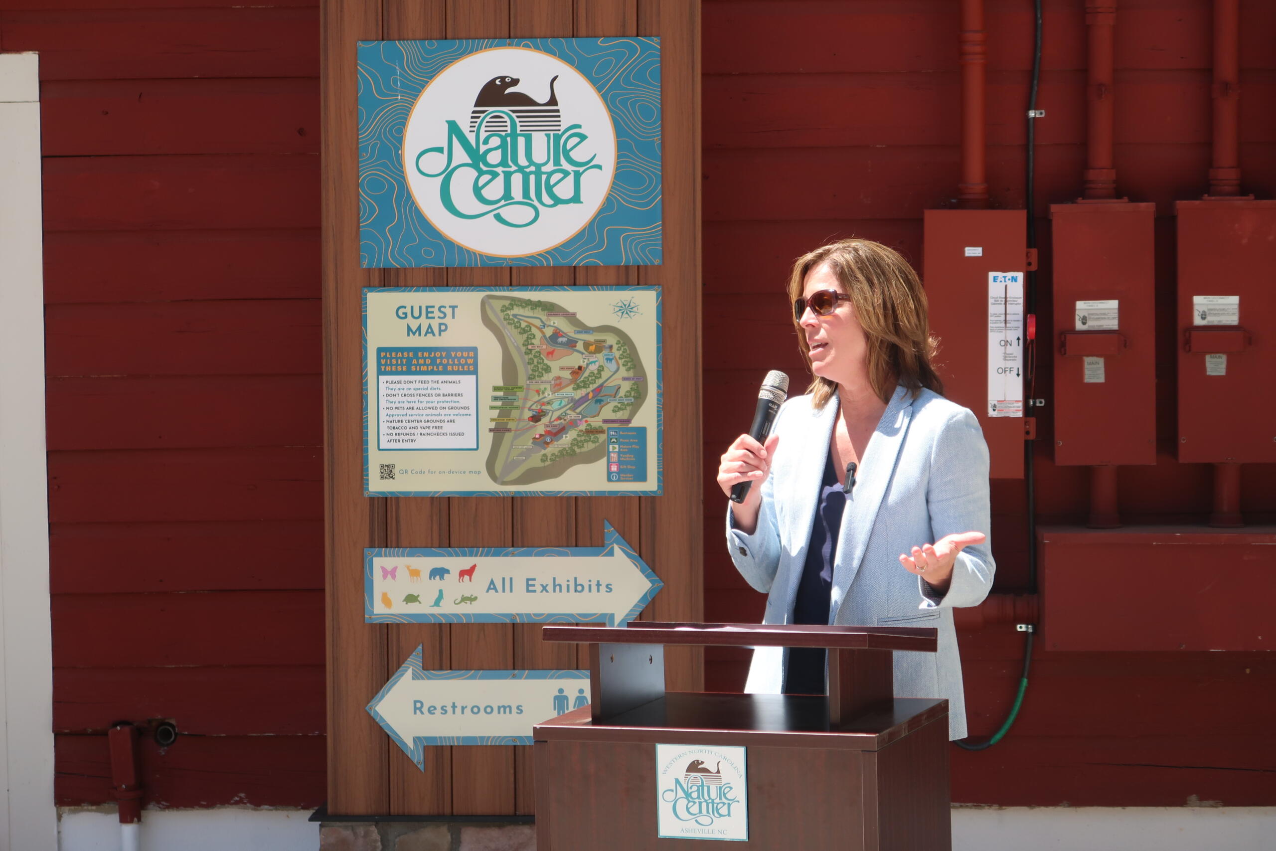 Chris Gentile, WNC Nature Center director, Kate Frost, executive director of the Friends of the WNC Nature Center and Manheimer each took to the podium to share a few words before the ribbon cutting. They spoke to a crowd including WNC Nature Center and Friends of the WNC Nature Center staff, as well as WNC Nature Center visitors and members of the media.
