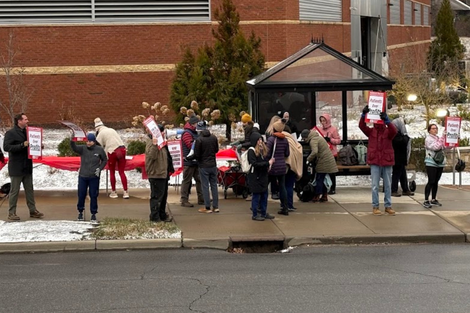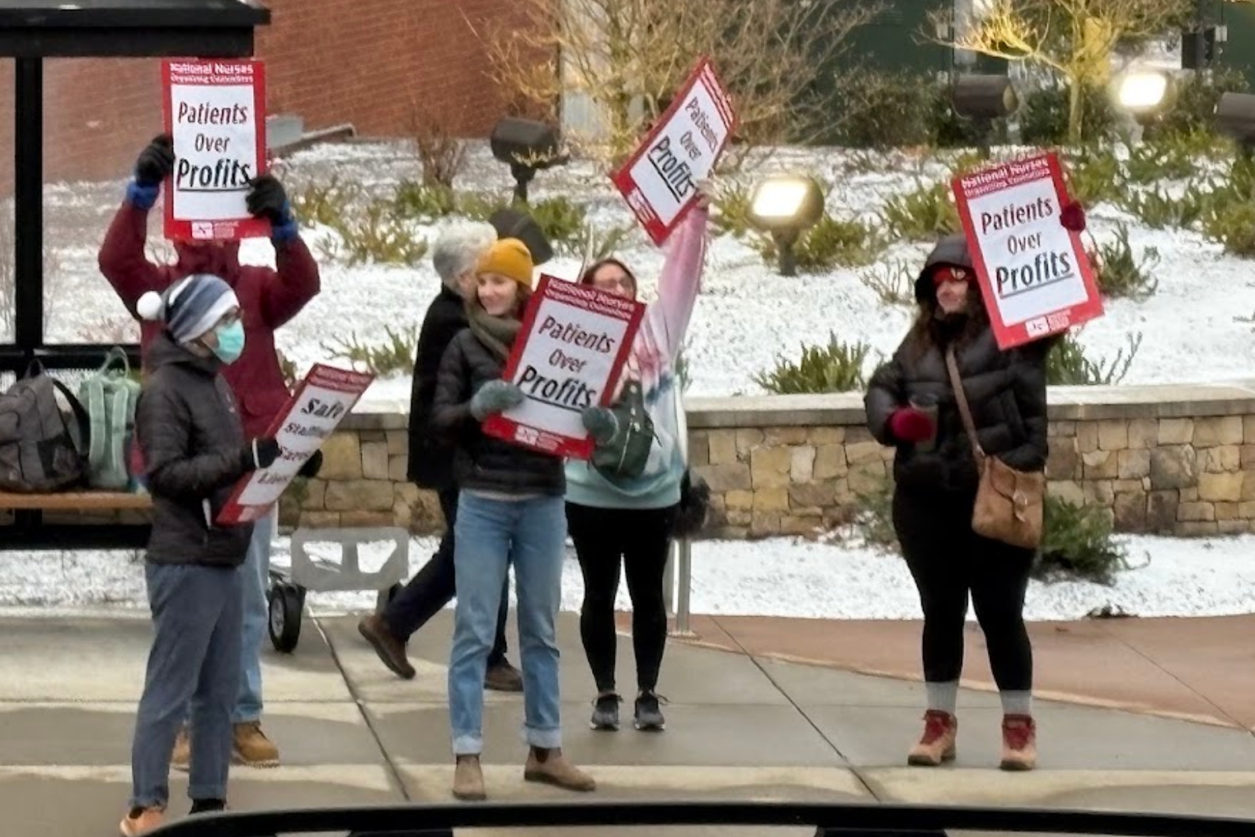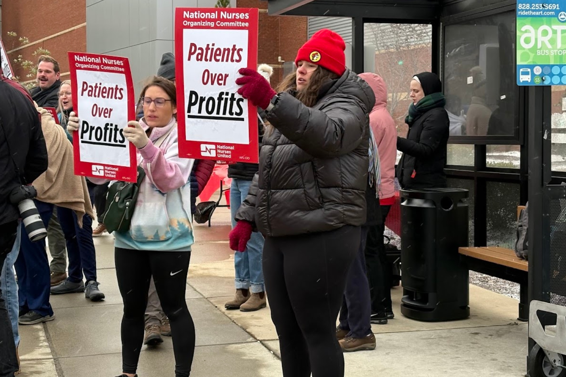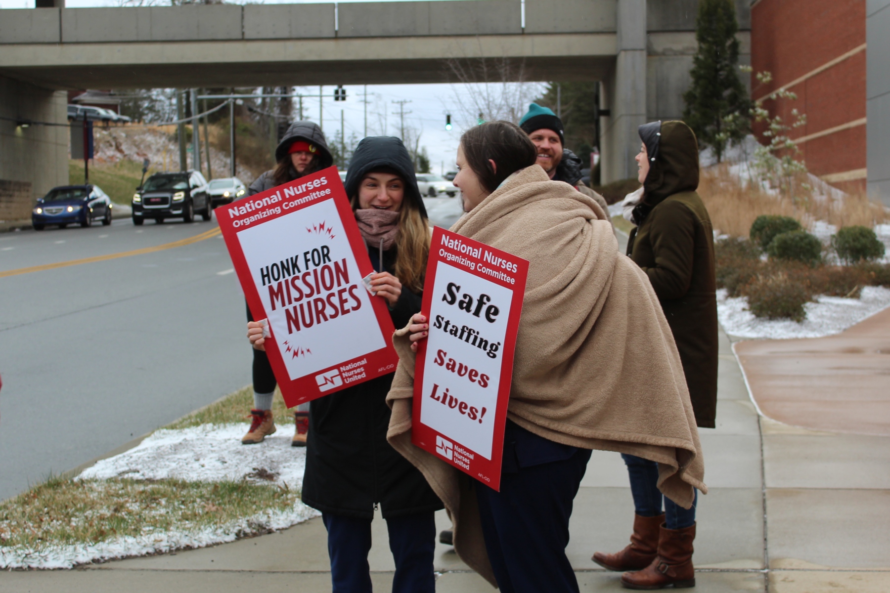 “No more profits over care,” the nurses yelled while vehicles going down Biltmore Avenue honked. “Patients over profits.”