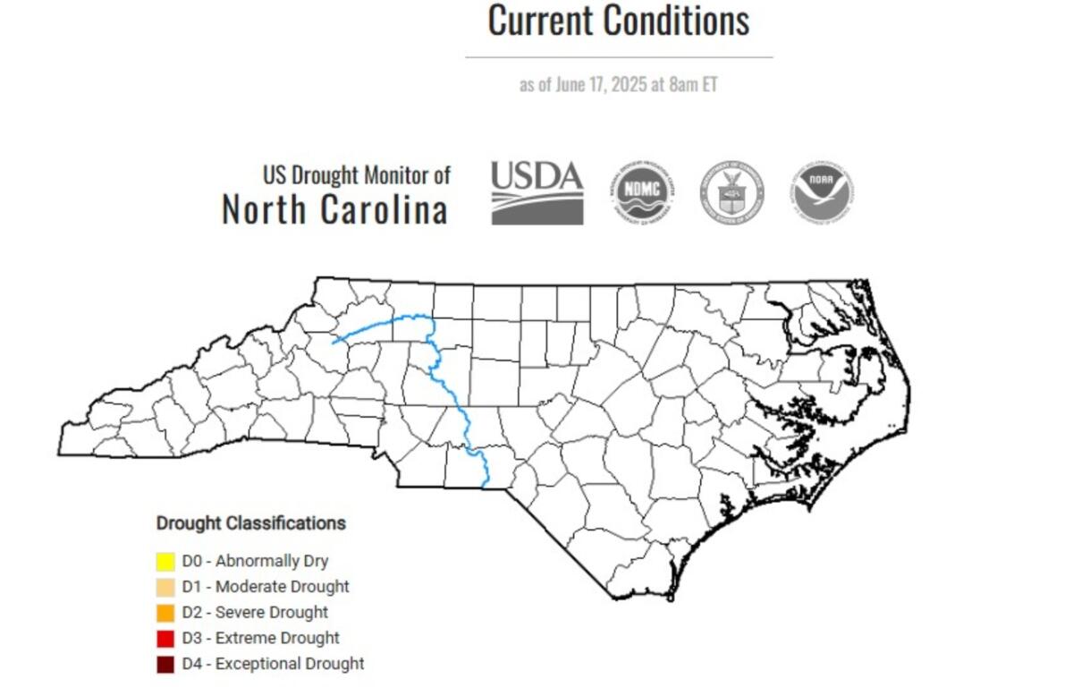 But heavy rains in recent weeks have helped reverse those deficits. A series of storms brought localized flooding and significant rainfall to eastern North Carolina, the news release said. Elizabeth City has already received 6.52 inches of rain this month, putting it on track for its wettest June on record. Greenville recorded 6.71 inches between June 15 and 16, marking its wettest two-day period since Hurricane Florence in 2018.