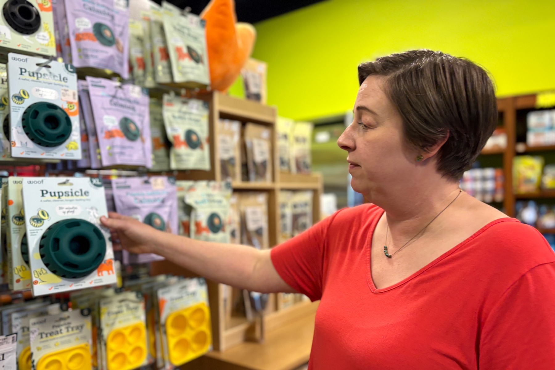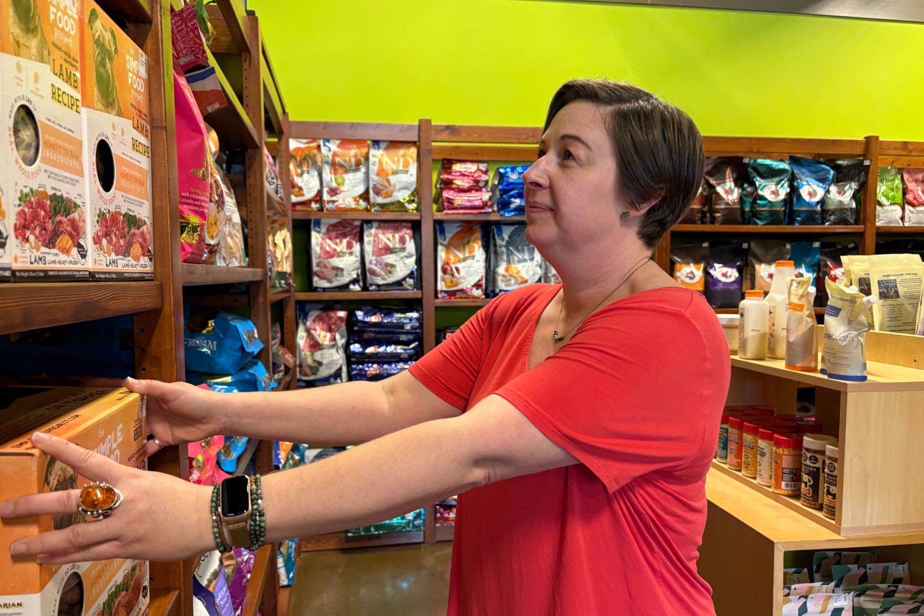 Berryman has worked at the locally owned pet supply store for about five years. Though the shop doesn’t emphasize formal job titles, her role centers on keeping the store stocked, organized and welcoming for customers and their pets.