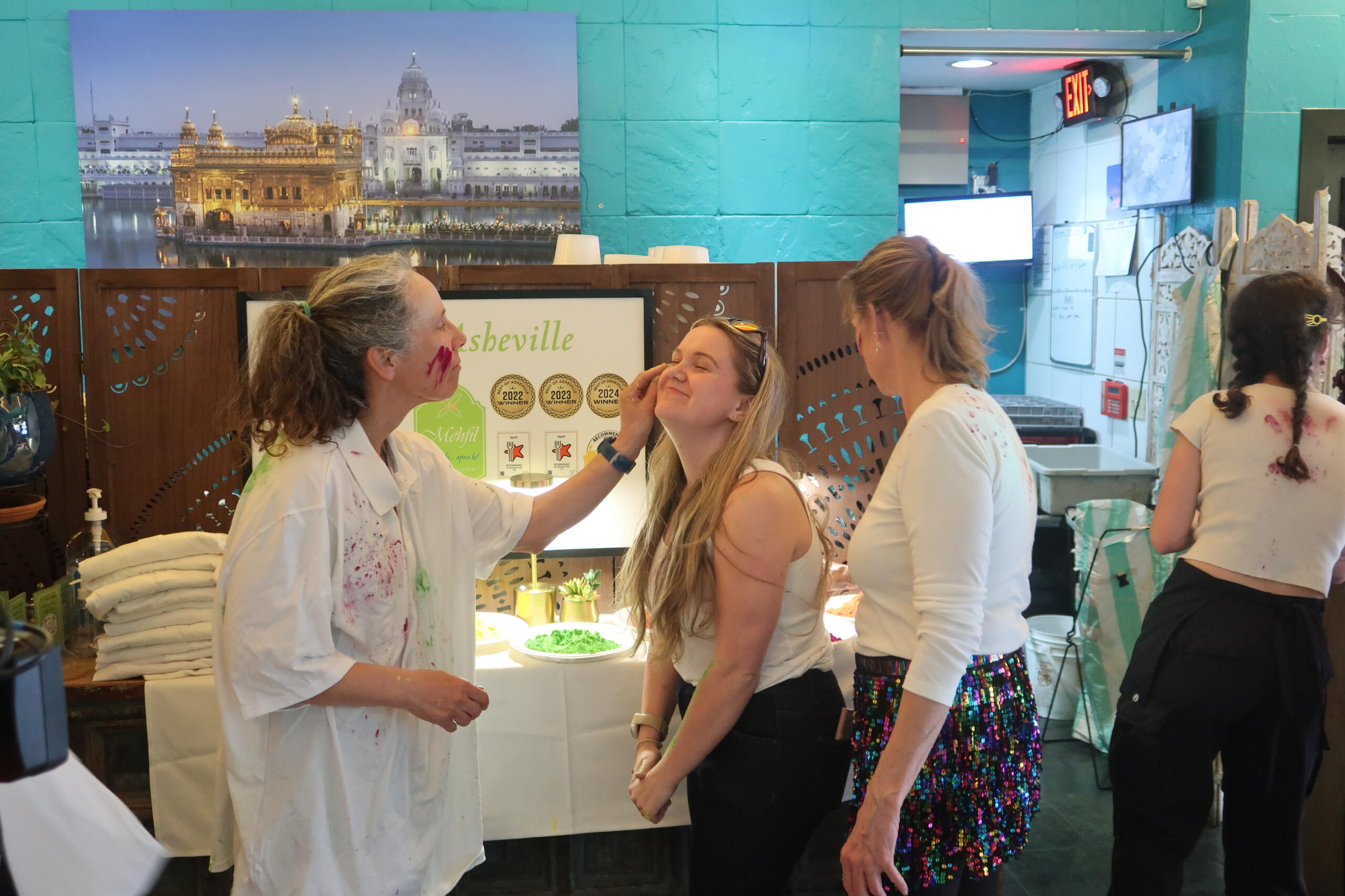 ASHEVILLE, N.C. (828newsNOW) — Mehfil Indian Restaurant celebrated Holi, the Indian festival of color and springtime, this evening with a buffet, traditional music and dance and “color throwing,” or tossing brightly-colored paint powder.