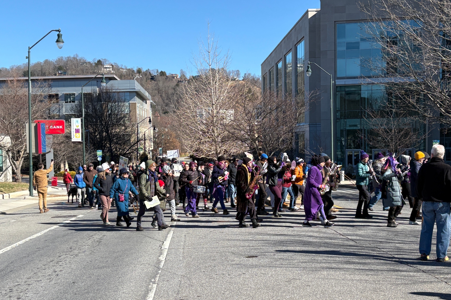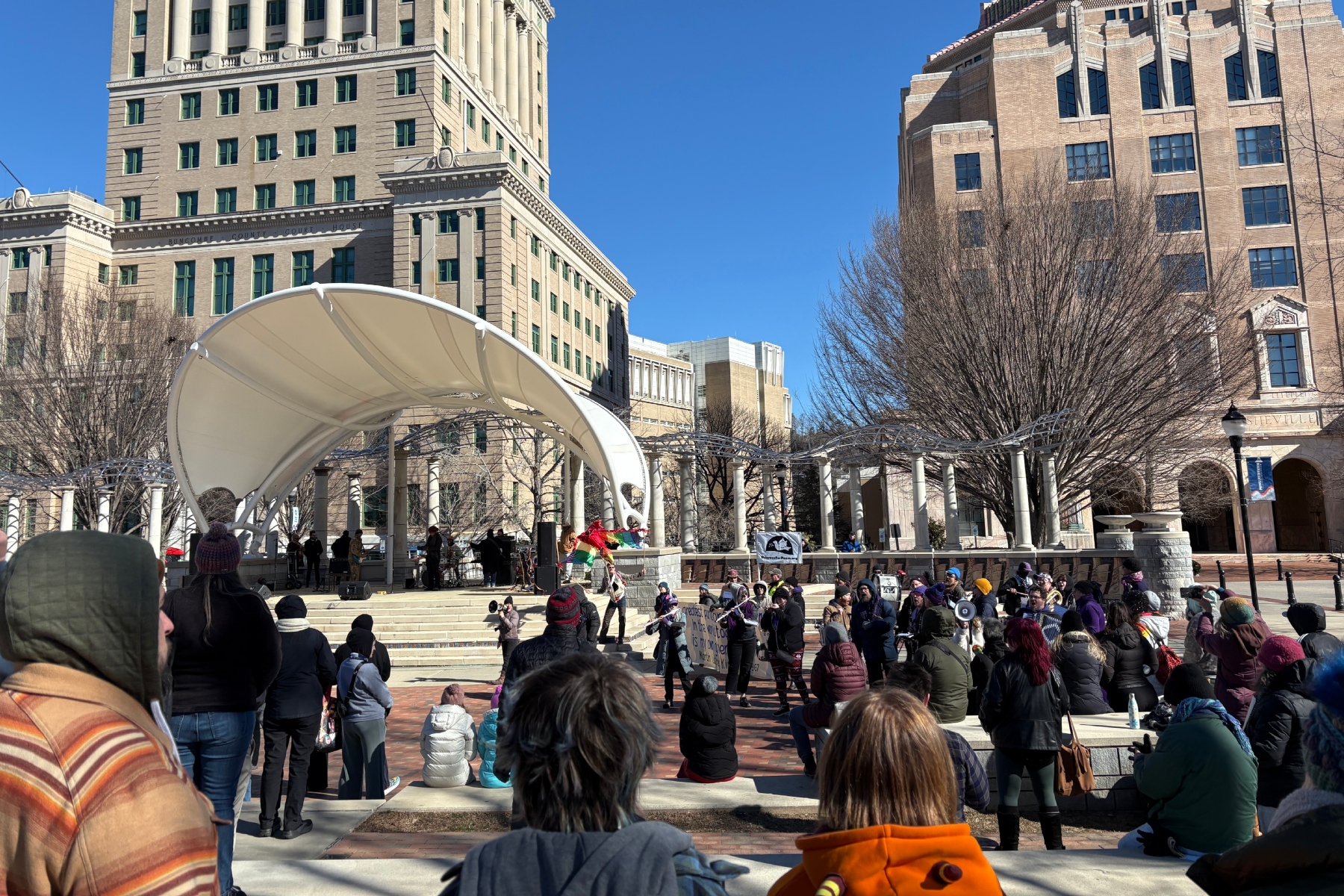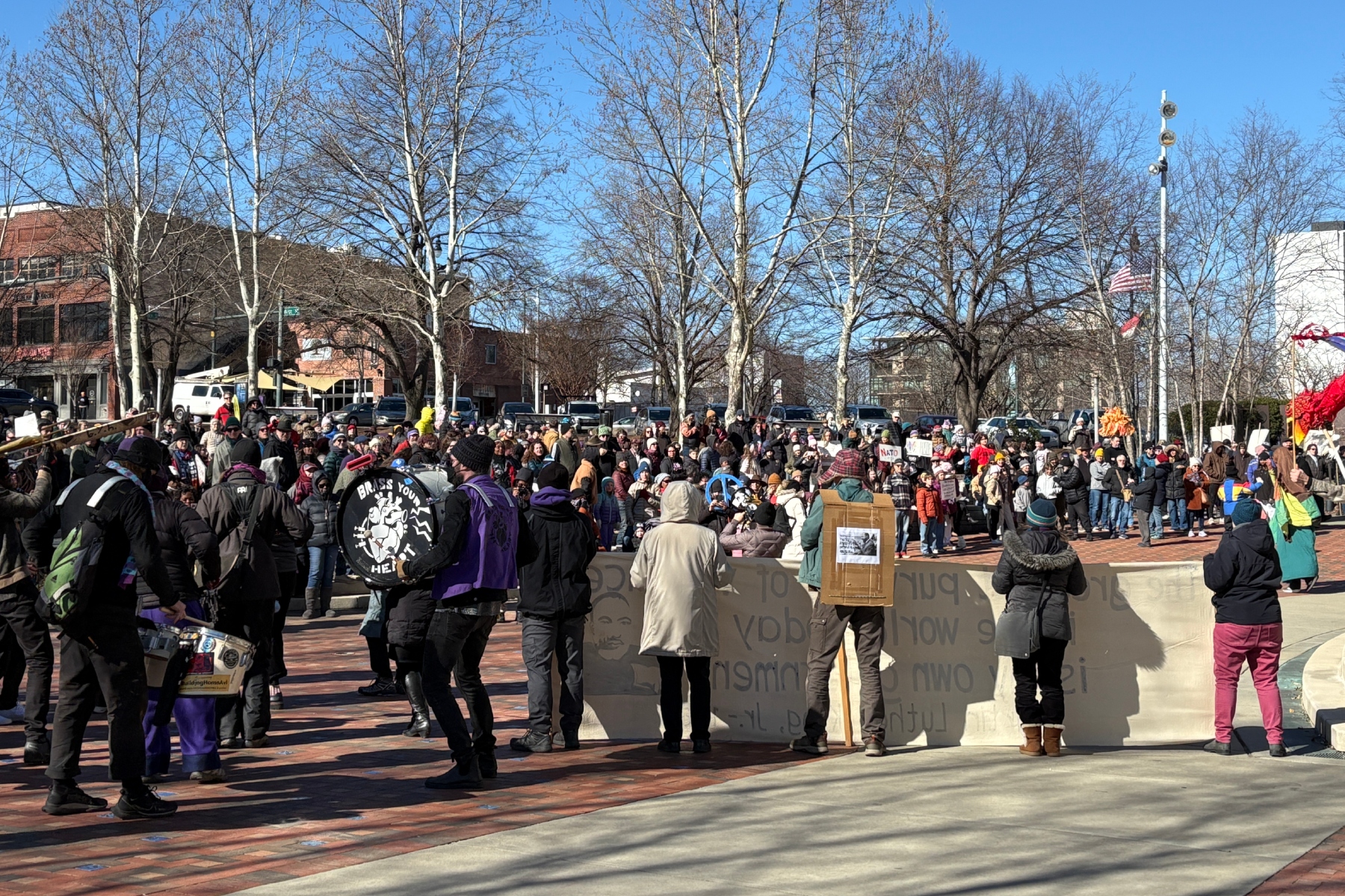 Hundreds then braved the bitter cold — with temperatures in the mid-30s and wind chills dipping into the low 20s — to take part in the annual Peace March, which concluded at Pack Square, where a public rally was held.