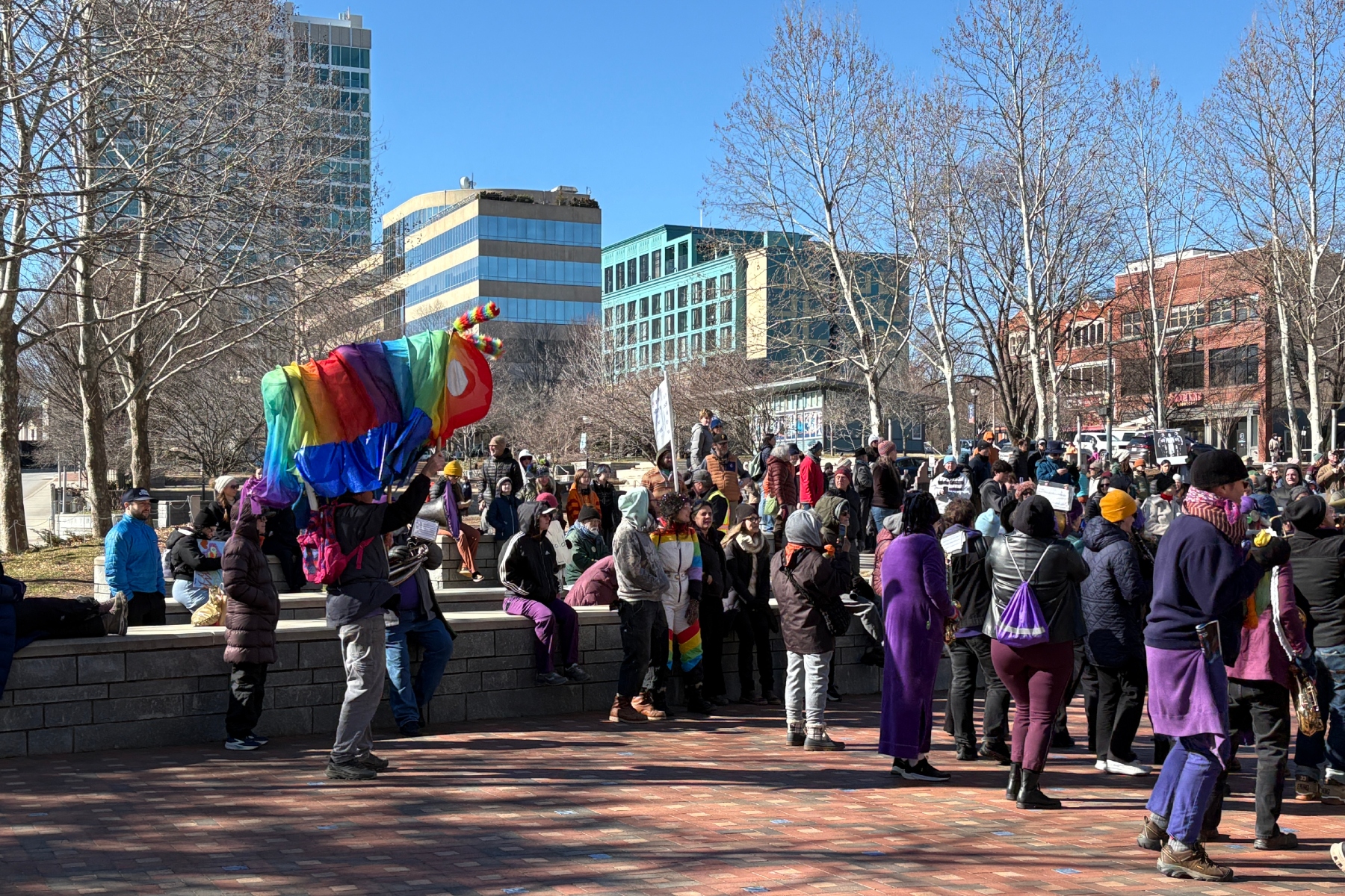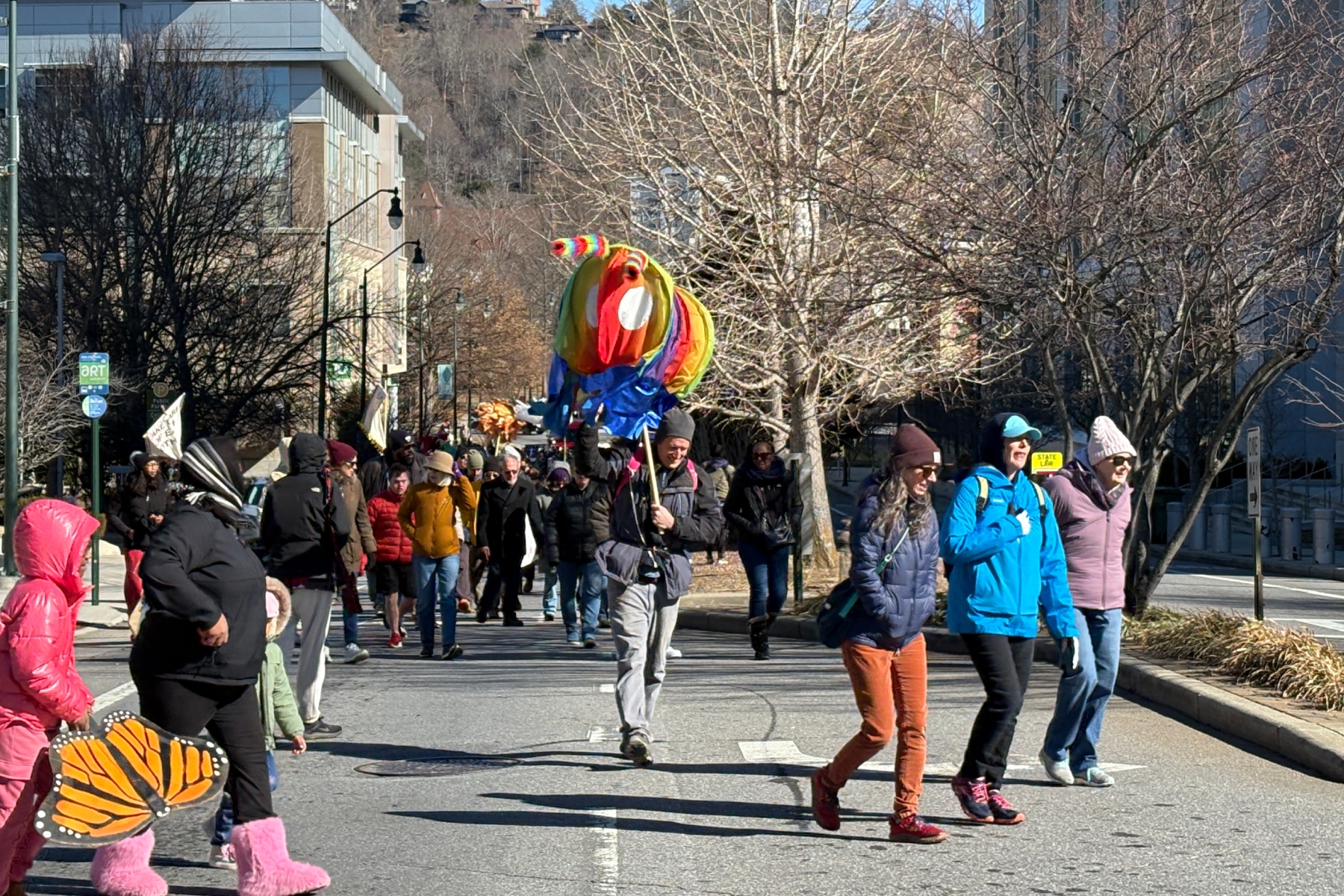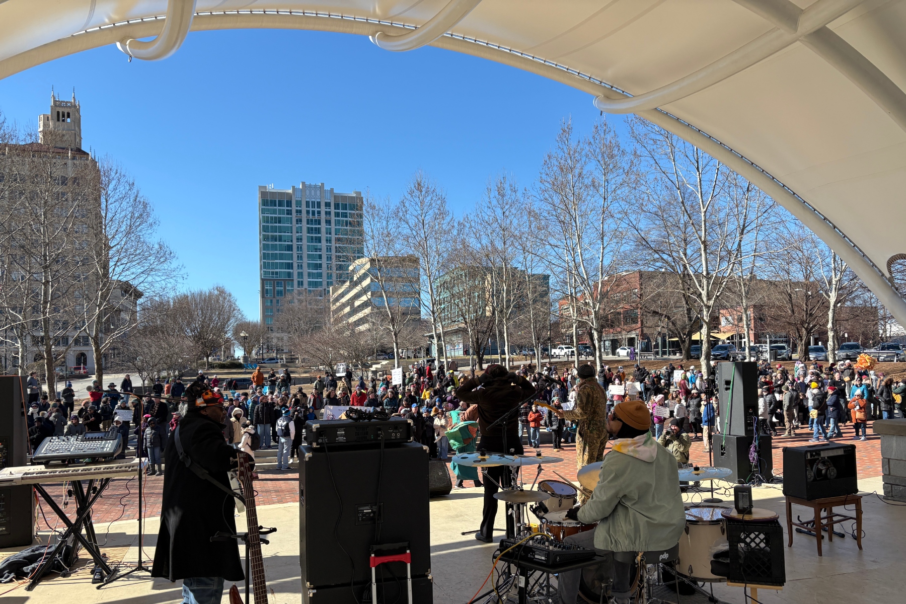 Hundreds then braved the bitter cold — with temperatures in the mid-30s and wind chills dipping into the low 20s — to take part in the annual Peace March, which concluded at Pack Square, where a public rally was held.
