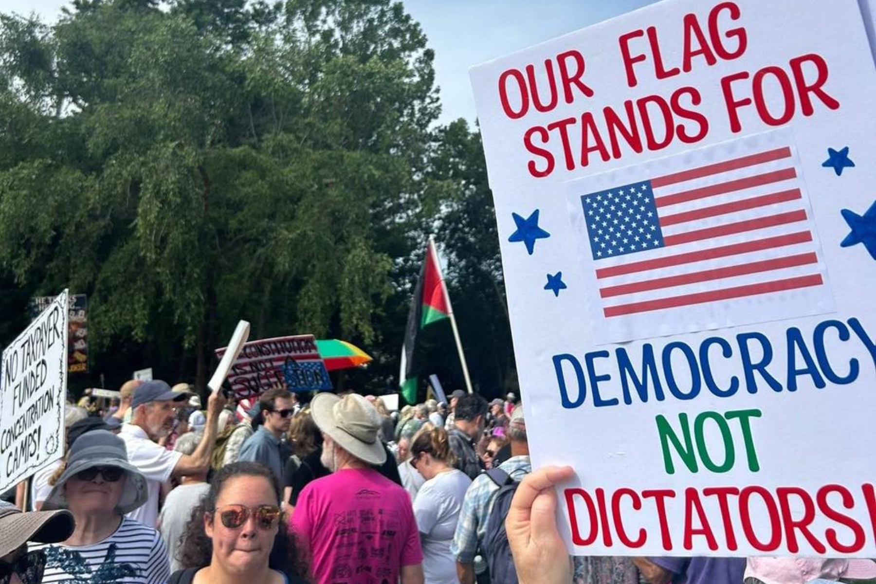 ASHEVILLE, N.C. (828newsNOW) — Thousands of demonstrators gathered in downtown Asheville on Saturday in coordinated protests against President Donald Trump and what organizers called his increasing authoritarian excesses and corruption.