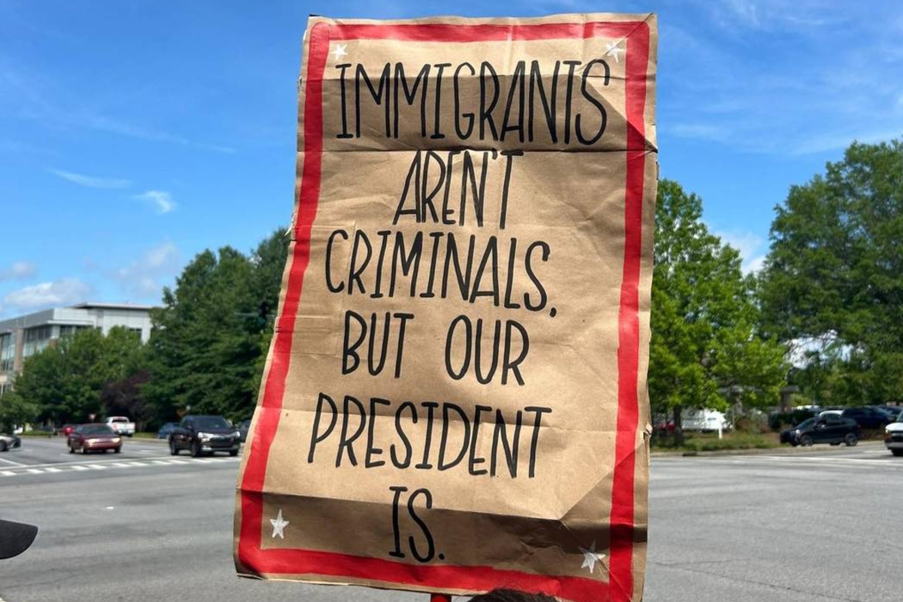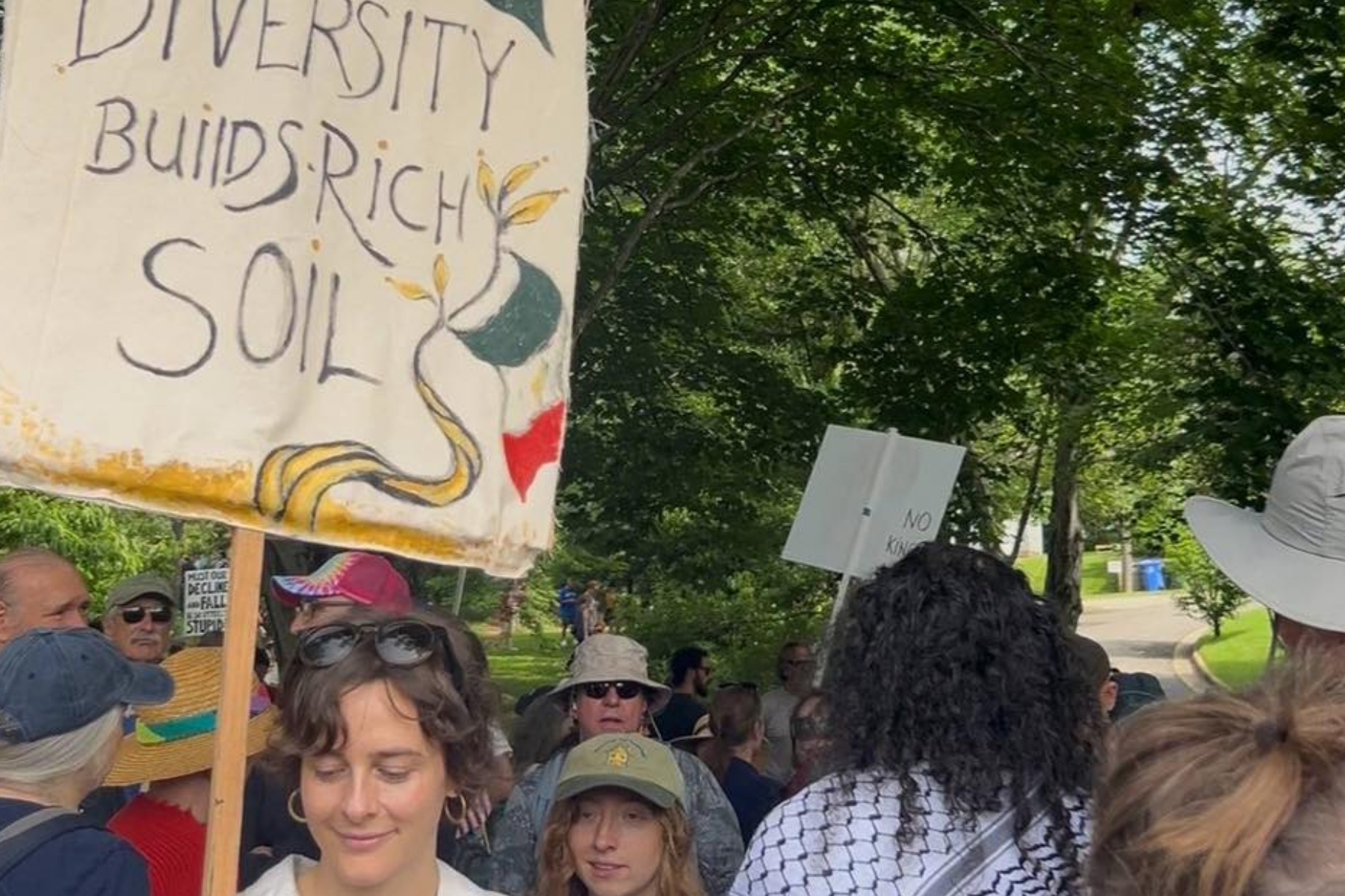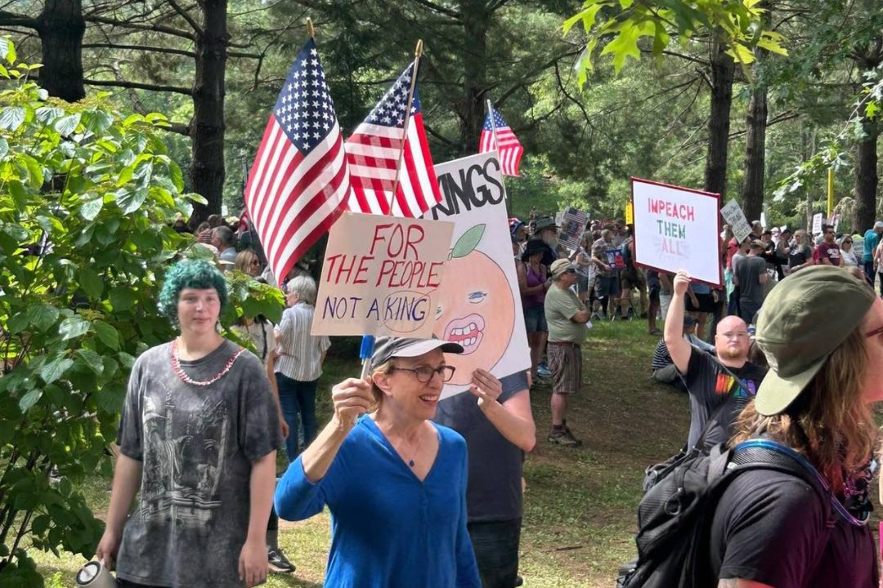 A separate but related protest, organized by the activist group Good Trouble WNC, took place at Pack Square Park under the banner “No Clowns, No Kings!”