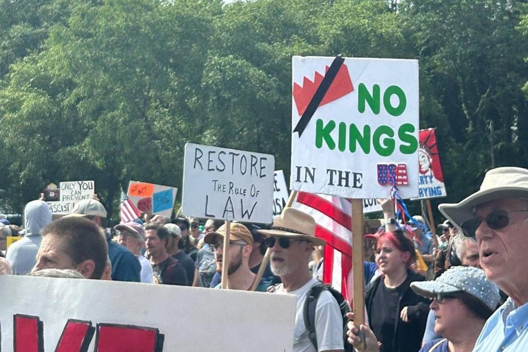 A “No Kings” protest at the Historic Courthouse in Hendersonville also drew hundreds.