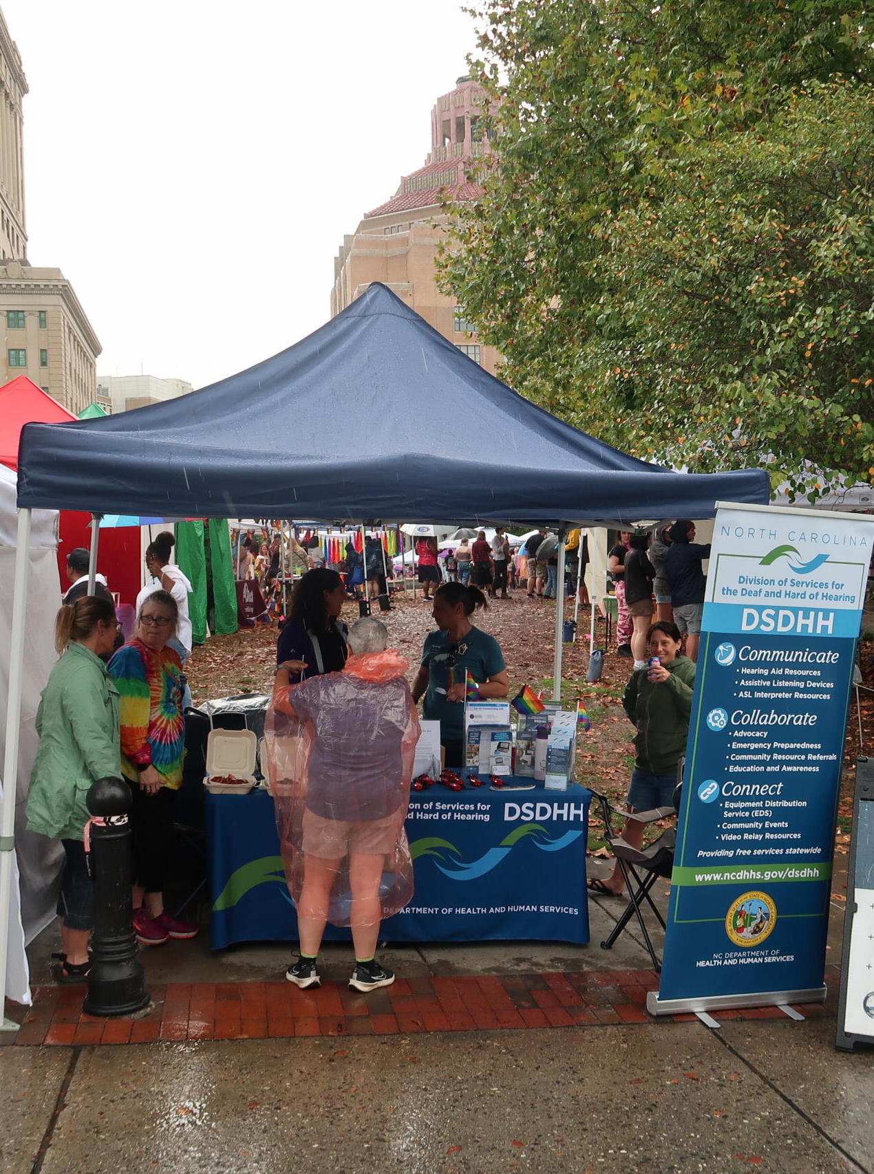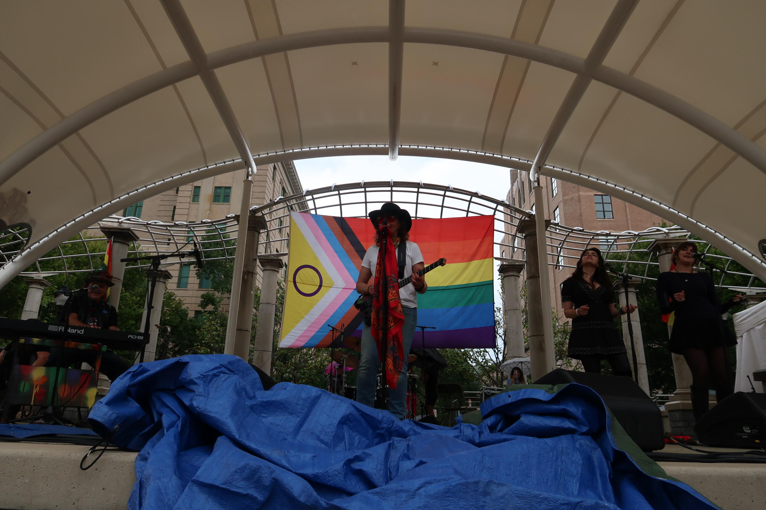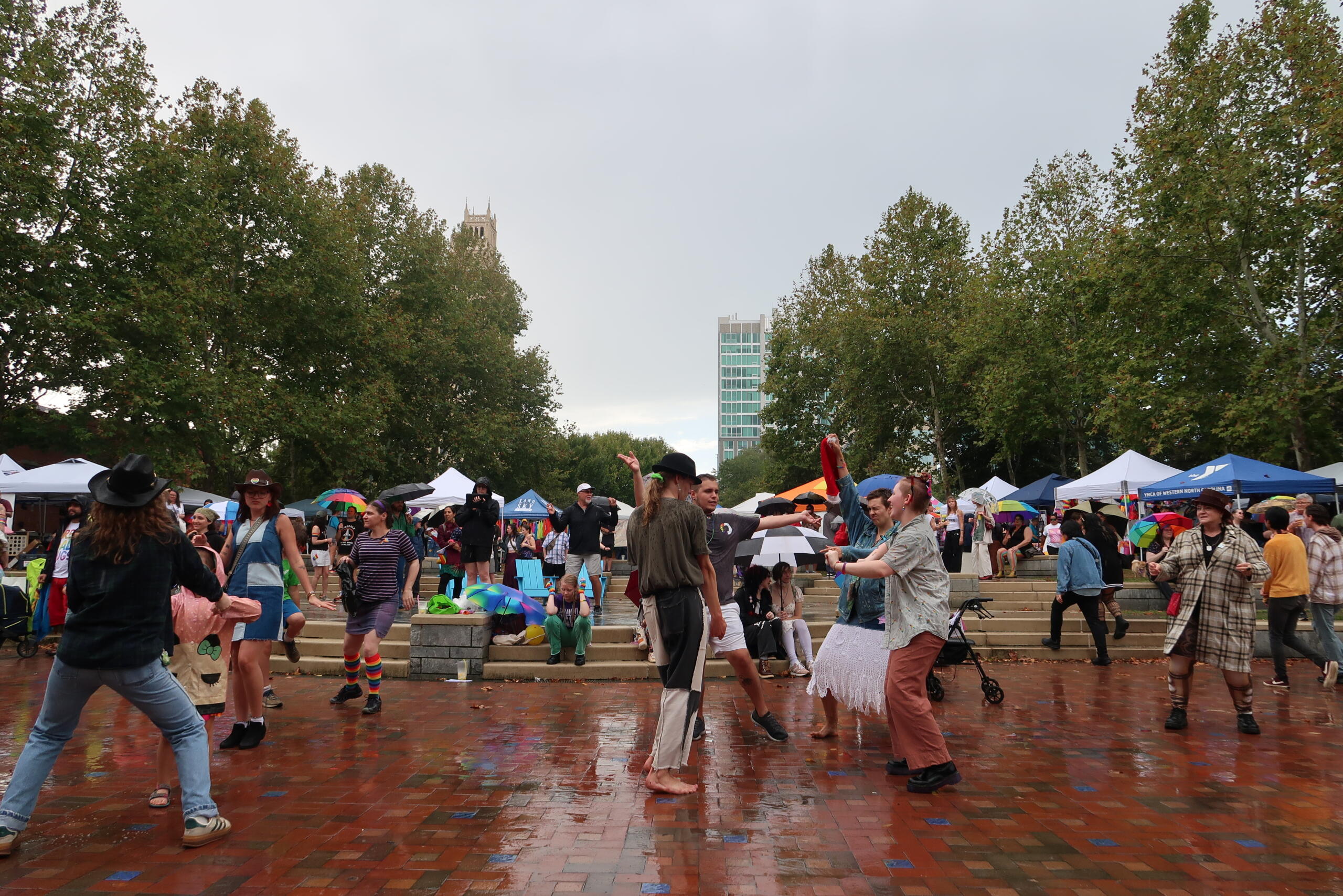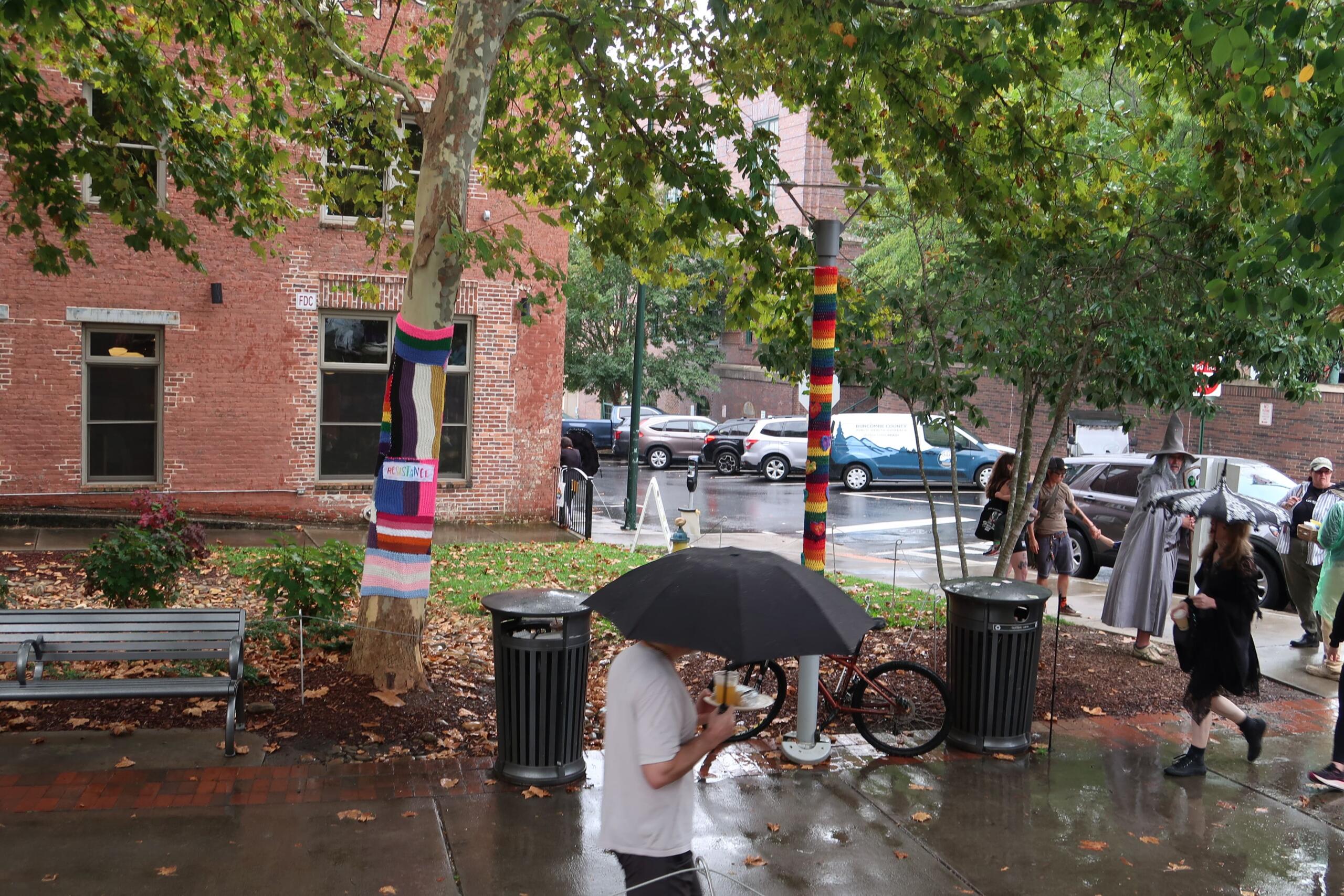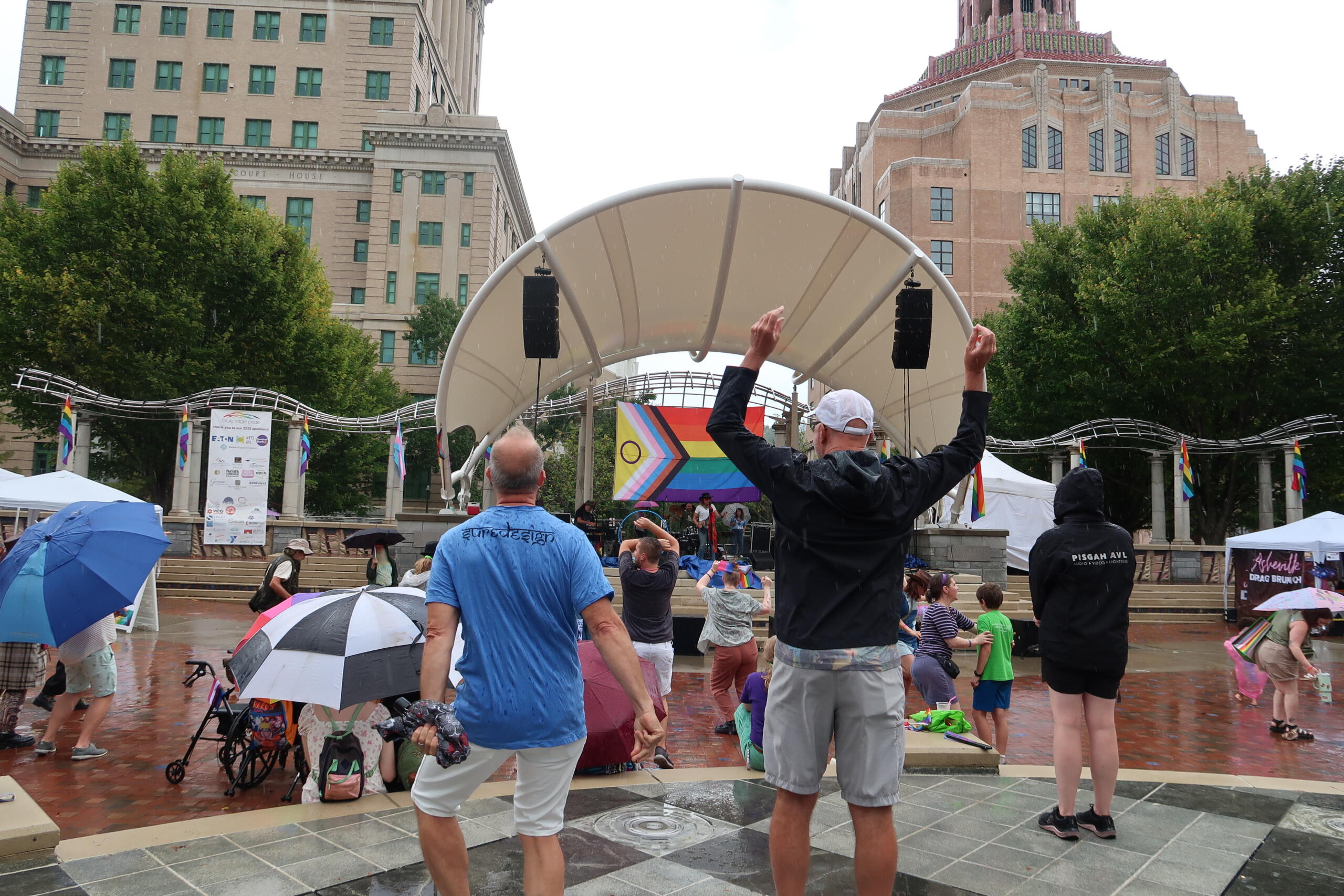 There were hundreds of Pride participants celebrating in downtown Asheville, most decked out in their best rainbow regalia. Several rainbow umbrellas also dotted the crowd as rain fell, but Asheville’s queer community weathered the storm, dancing, singing and chatting as bands played on the two festival stages.